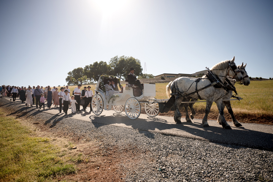 We had many things we were particular about, and one example was incorporating a horse and carriage into the day. For Tim, it was a nod to his childhood, where horse-drawn transportation was part of everyday life. But for me, it was something straight out of a fairytale, and I felt like a princess ready to ride into her happily ever after. The carriage transported us from our afternoon ceremony site to the dinner reception. Tim was initially worried about the steep hill between the two locations, but we found a vendor with a pair of strong horses that handled it with ease. It ended up being a magical part of the day.