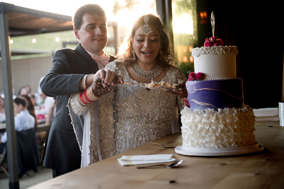 Our reception was packed with unforgettable moments, but the incredible speeches were definitely the highlight! Kiran’s friends’ along with his sister and father had everyone laughing, while Tim’s brother and sister surprised us with heartfelt and funny stories. Kiran’s younger sister, a classically trained dancer, performed a mesmerizing solo inspired by the Bollywood movie, Devdas. And the night ended on a high note with a conga line-style dance to the Bhangra song “Rail Gaddi,” with nearly everyone on their feet, winding through the venue. It was the perfect way to close out an incredible celebration!