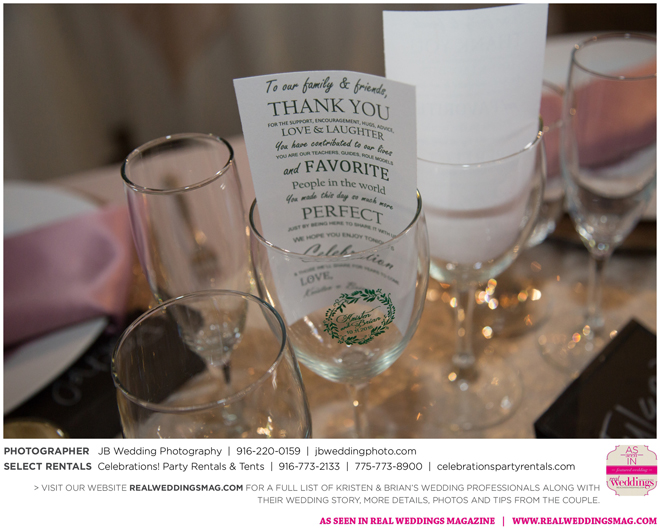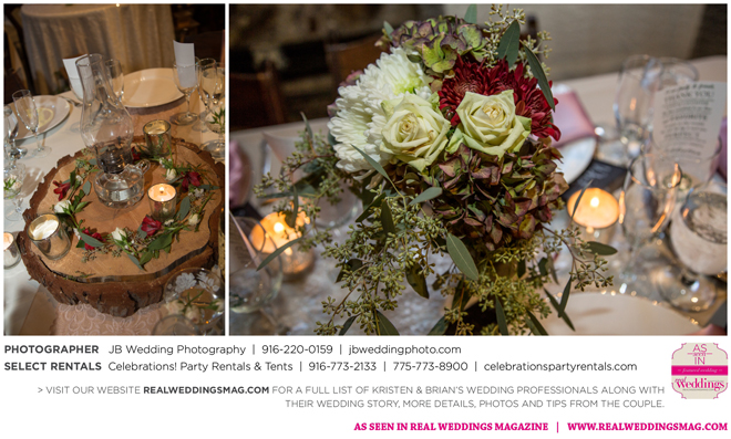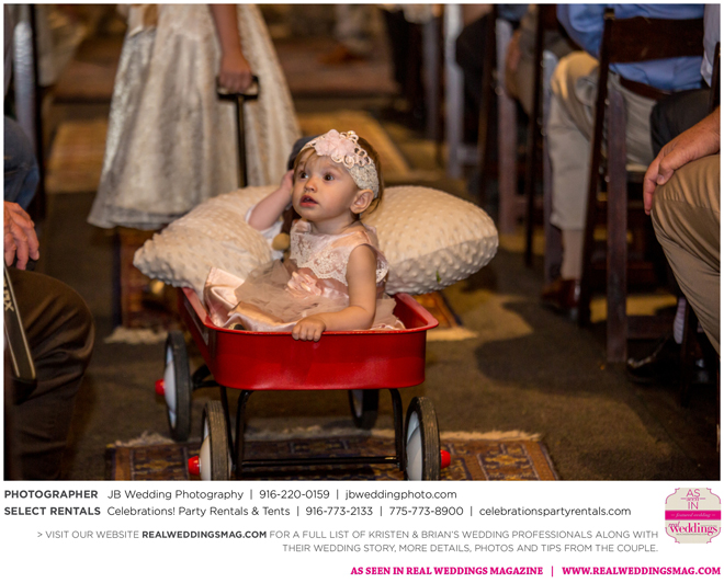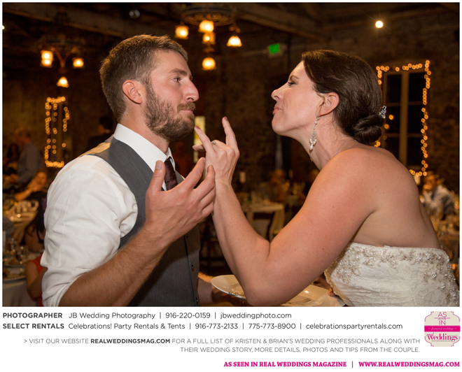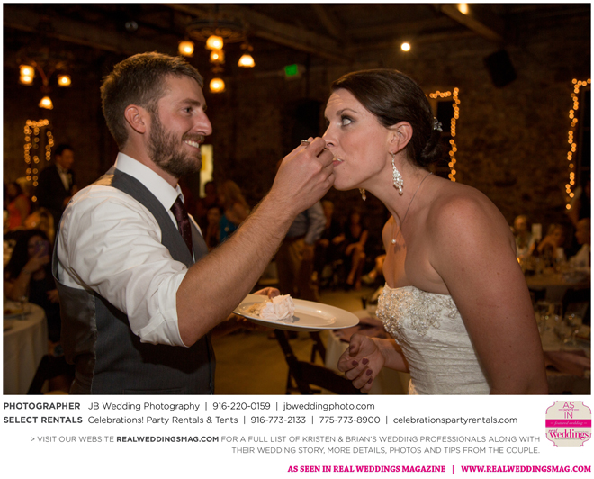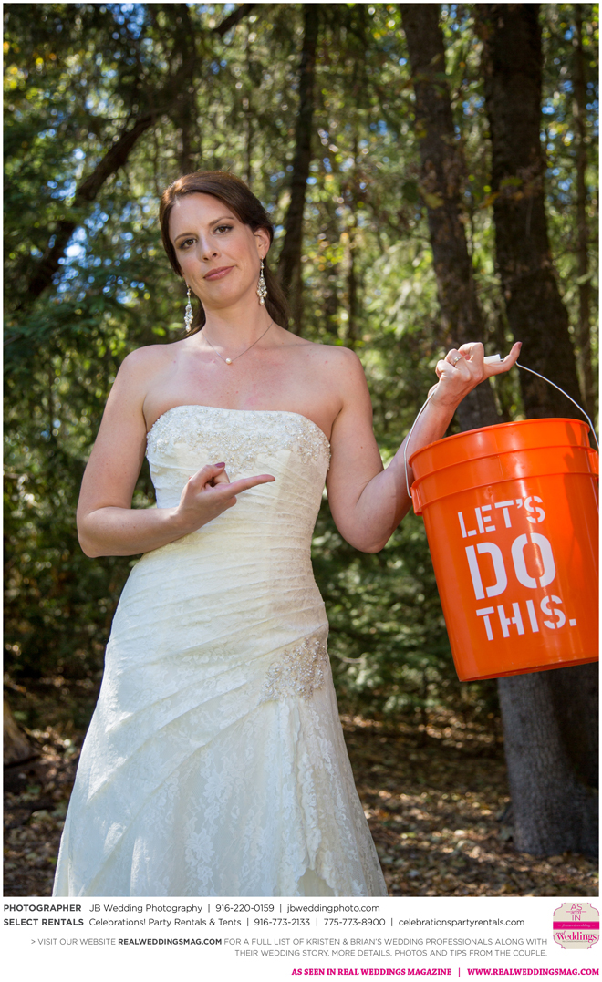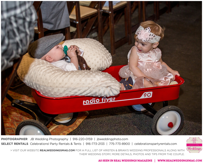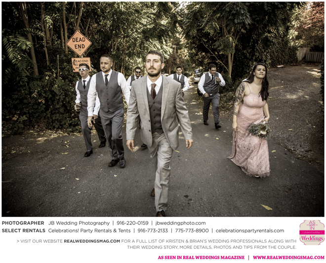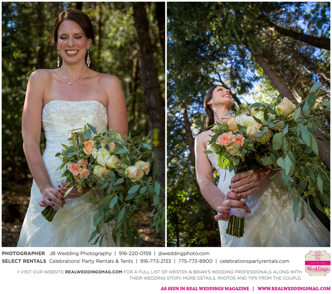 Both Kristen and Brian attended the same high school in Grass Valley but they never crossed paths. Then eight years later at Bullard’s Bar Reservoir on a weekend trip with mutual friends. “My first memory of Brian was on a boat,” says Kristen. His friend (later the best man) let me drive. I remember Brian looking at me and laughing, and I was thinking, ‘This guy thinks I’m totally ridiculous right now, and I just don’t care. I’m driving a boat.’” Though neither says they were looking for a significant other at the time, the two began a friendship that transitioned to romance fairly quickly.