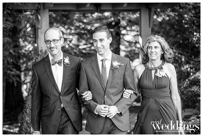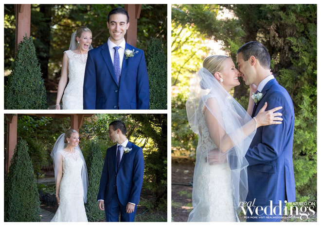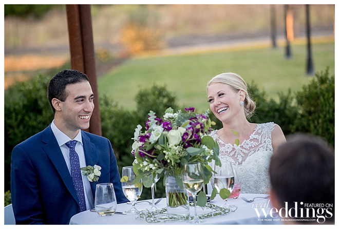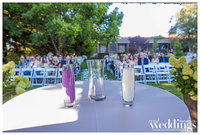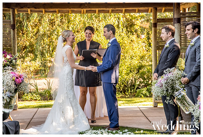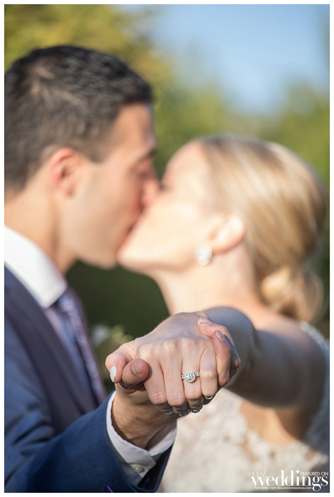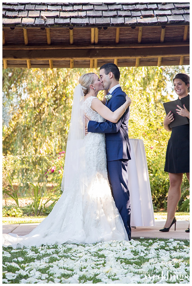 By the time the ceremony began, the new caterers had not yet arrived. Kristen and Jon decided that food was not the most important part of the day, and decided to proceed. They shrugged their shoulders and said, “At least there’s plenty of booze.” After a beautiful ceremony and a romantic kiss between the bride and groom, the caterers had not only arrived, but also had delicious hors d’oeuvres prepared and ready to serve, and dinner preparations were underway. The couple enjoyed another kiss and a giant sigh of relief that their new caterer had come through for them.
