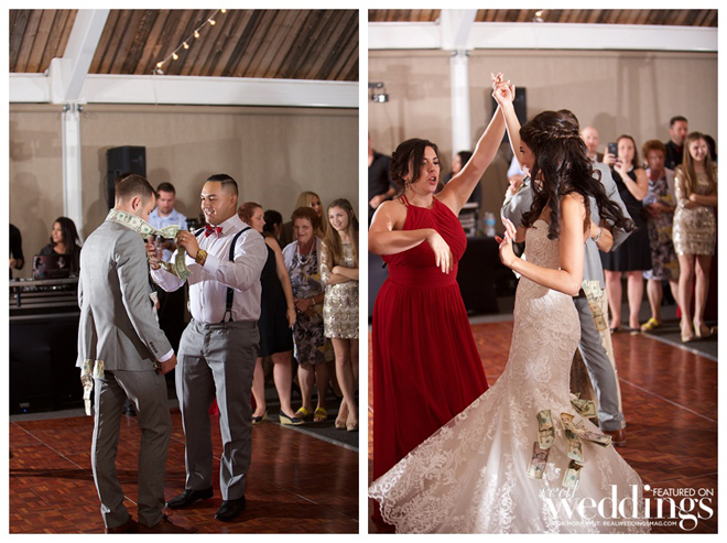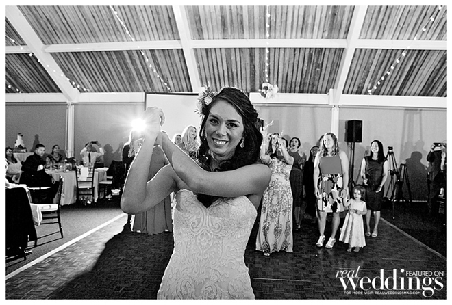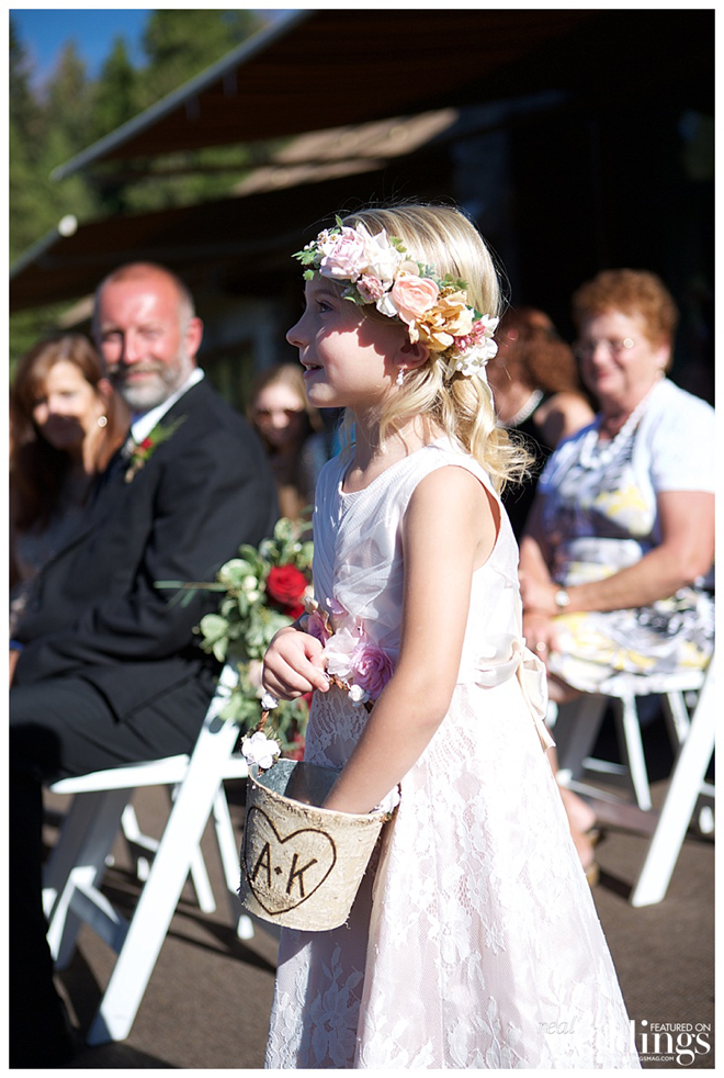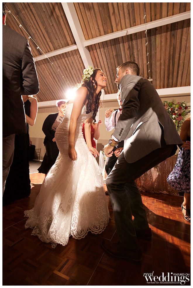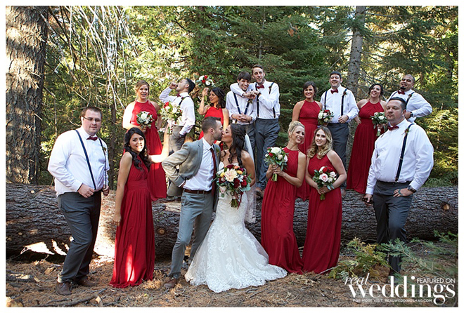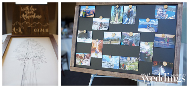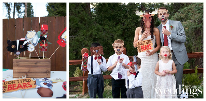 Kristian describes the atmosphere as laid back, casual and playful. “We had an outdoor photo booth area filled with silly camping props and wildlife props, a big outdoor fire pit where people could make s’mores, and Aaron even made a personalized corn hole set for the wedding. We wanted our wedding to embody the same joy, contentment and relaxation you feel when hanging out next to a campfire with all your friends,” she said. “I think we did a pretty good job of that.”