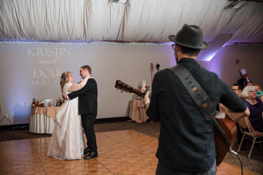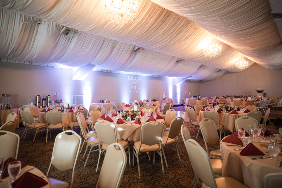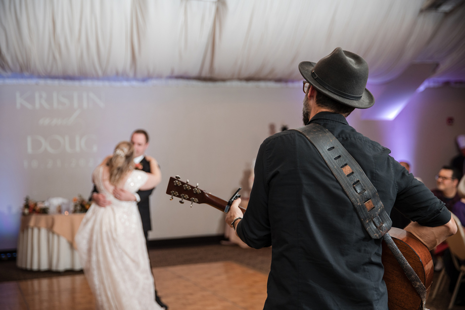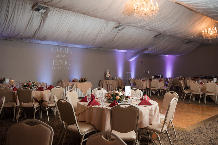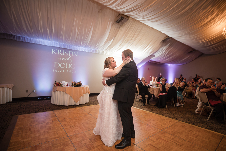 Kristin loved picking out her dress with three of her bridesmaids (and another on FaceTime!). Doug’s suit shopping was memorable as well, and putting together the seating chart and tasting cake were other highlights! The only difficult thing about planning is that Kristin’s mom passed away in 2021 and couldn’t be there for planning or the event.