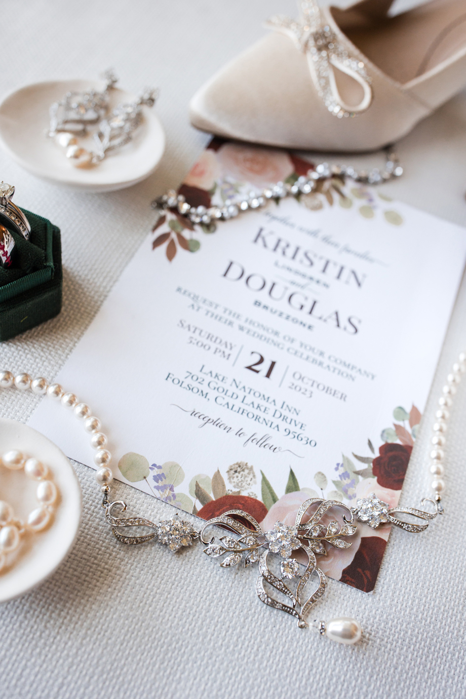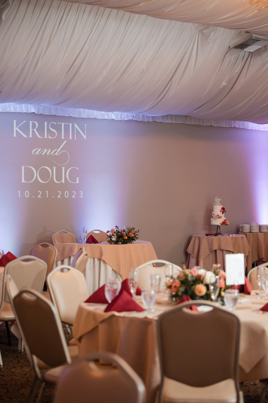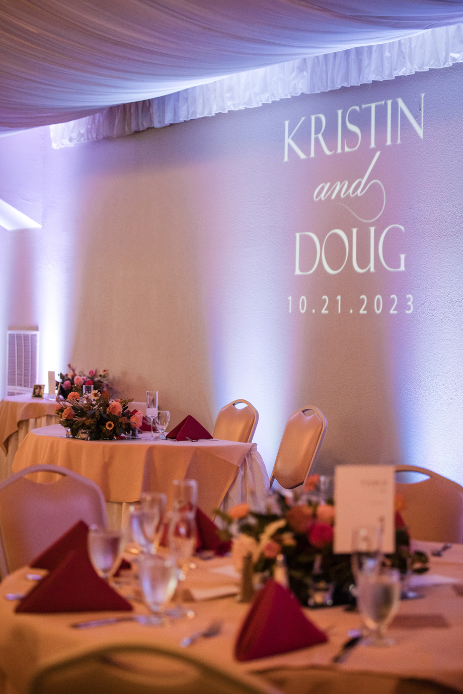 Kristin loved picking out her dress with three of her bridesmaids (and another on FaceTime!). Doug’s suit shopping was memorable as well, and putting together the seating chart and tasting cake were other highlights! The only difficult thing about planning is that Kristin’s mom passed away in 2021 and couldn’t be there for planning or the event.