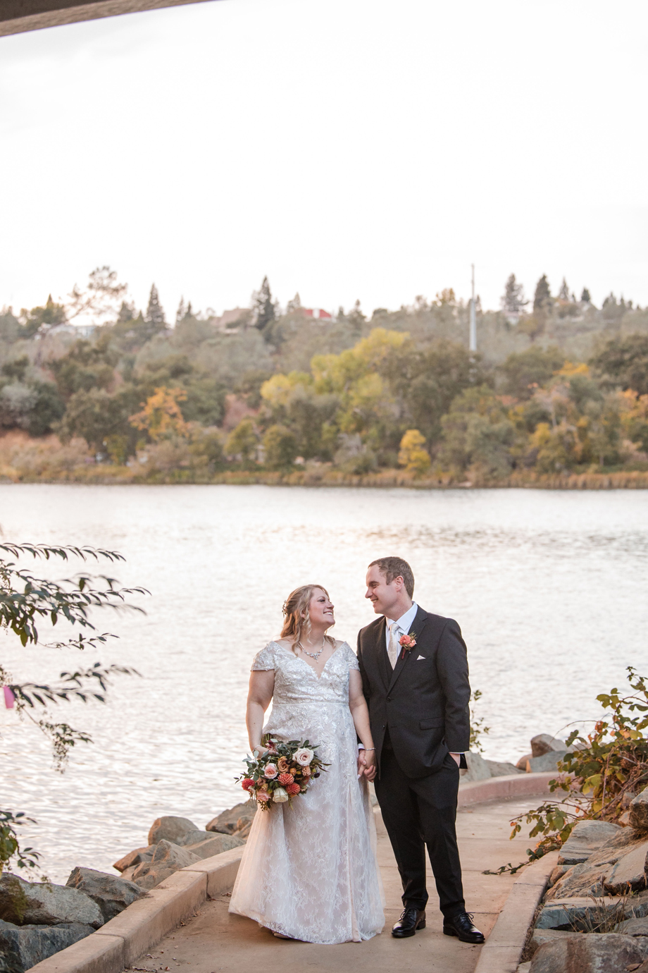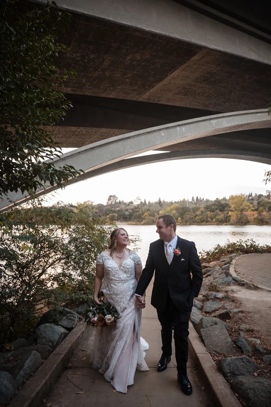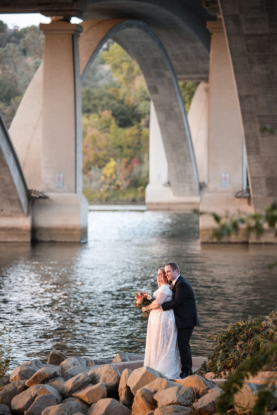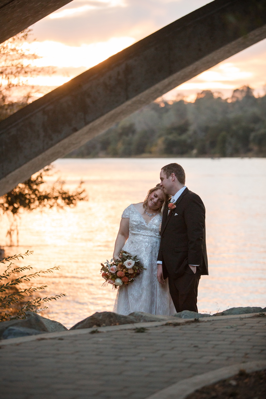 In addition, we wanted to take advantage of the beautiful location for the ceremony and reception, and our photographer, Kaboo, did an amazing job of getting photos of the river and bridge behind the venue as well as the florals.