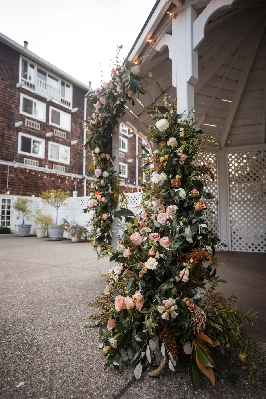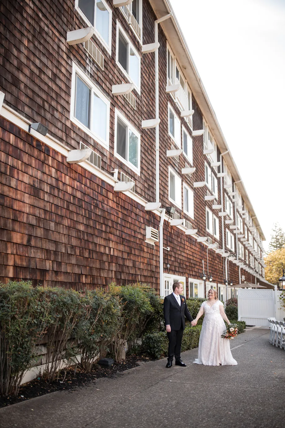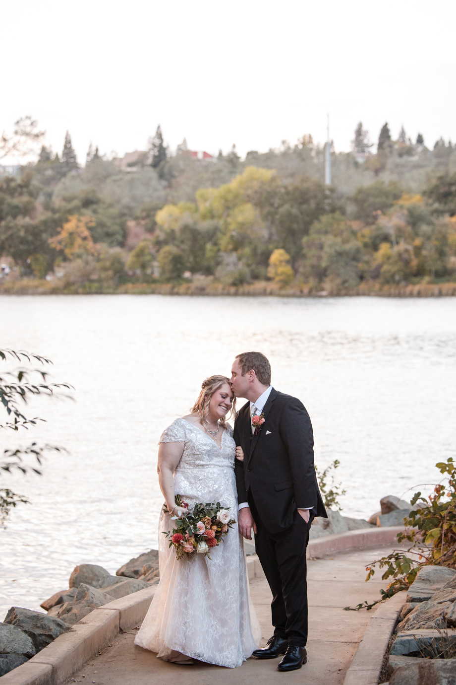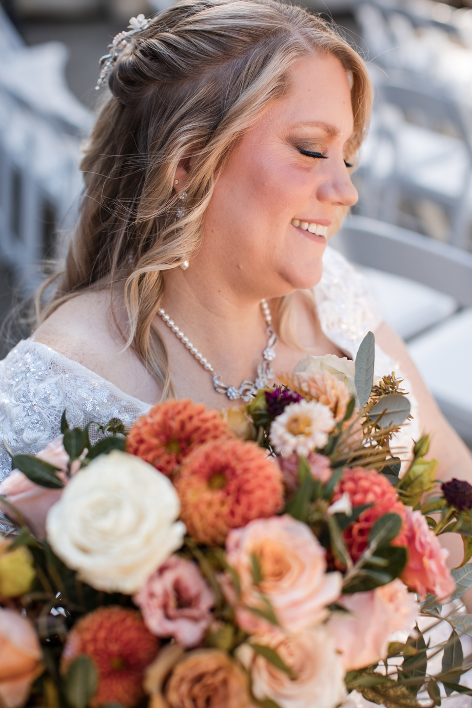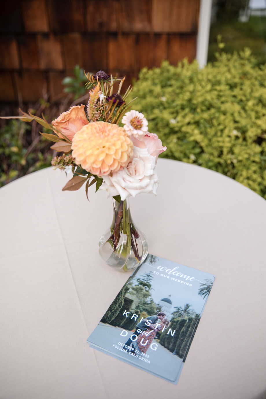 In addition, we wanted to take advantage of the beautiful location for the ceremony and reception, and our photographer, Kaboo, did an amazing job of getting photos of the river and bridge behind the venue as well as the florals.