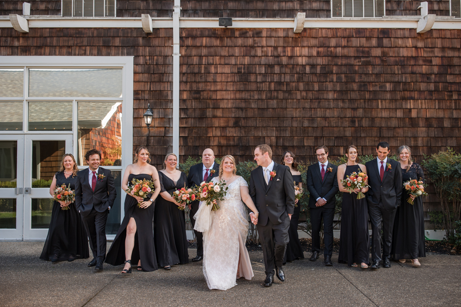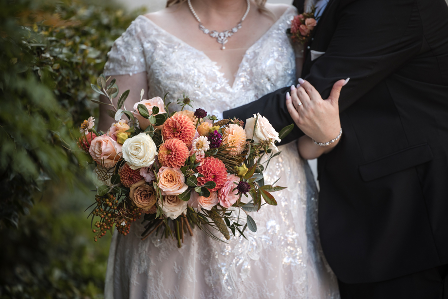 We gave our floral designer, Bekah, lots of creative control to use seasonal fall flowers, and she came through in a big way—we could not have asked for more. She was also able to buy flowers from one of my bridesmaids who runs her own floral business, so that was very special.
