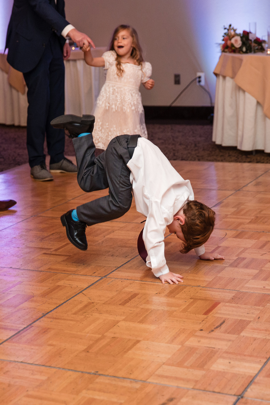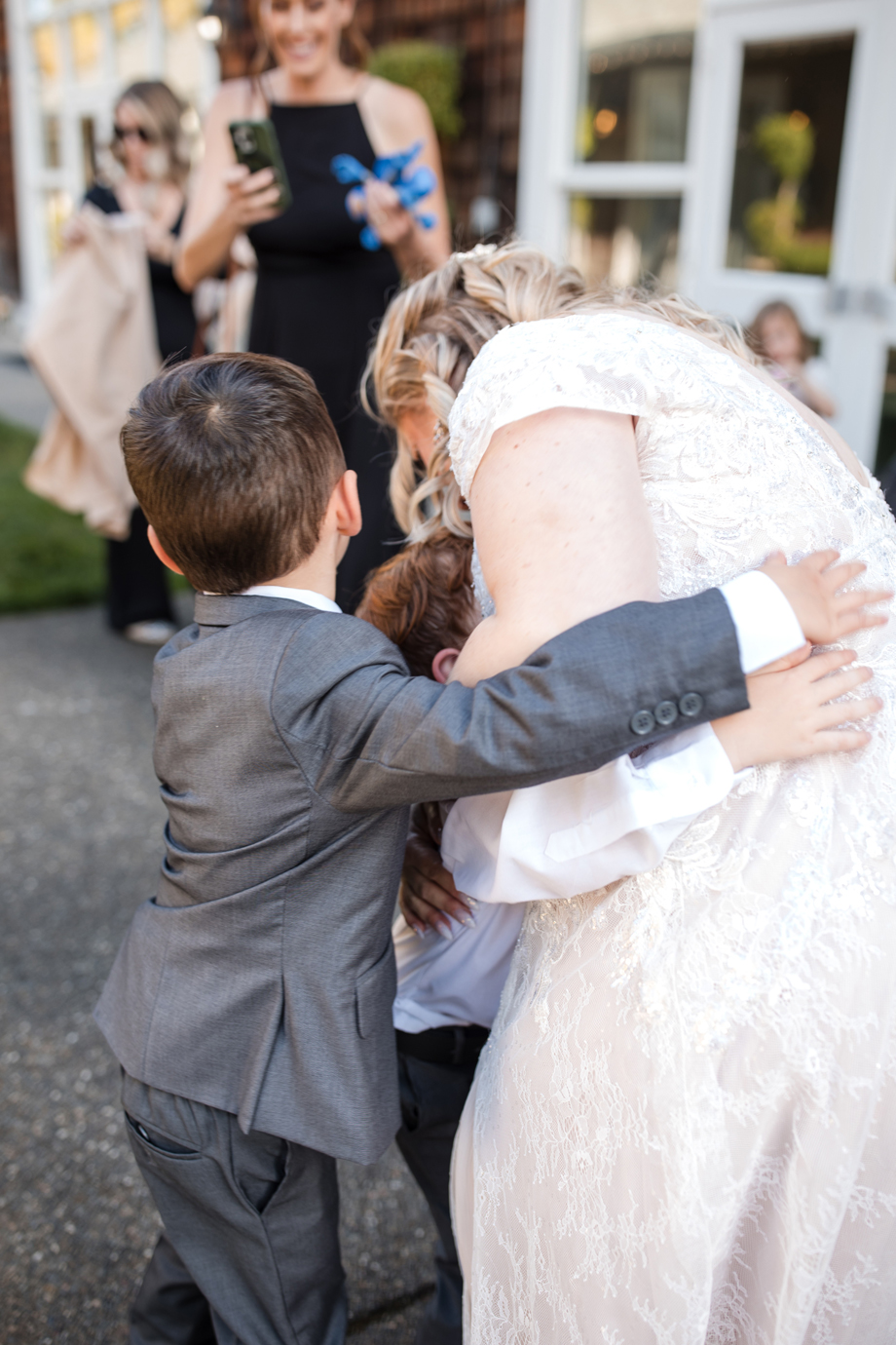 The kids truly stole the show! Our ring bearer, Guy, son of our officiant and cousin Lee, refused to walk down the aisle with the flower girl, so his mom, Amelia, had to walk with him. She was not expected to be in the wedding, but she happened to match the bridesmaids and we were so happy to have her end up being a part of the ceremony. The flower girl and one of the junior groomsmen also made their way up to their moms during the ceremony, which gave the audience something to giggle about and we didn’t even know it was happening!