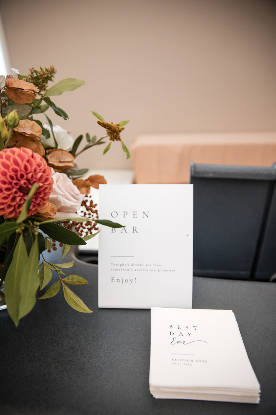 Kristin did most of the planning on her own. It went really well. Finding a florist was the biggest challenge as many were not responsive. We thought we’d found the right florist in our budget, but her assistant would not let me speak to her directly and I didn’t feel good about that. But, then a co-worker recommended Bekah and it ended up being the best fit! She was responsive and helpful and wonderful to work with.