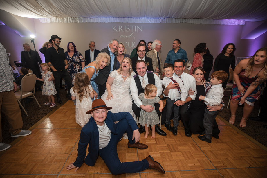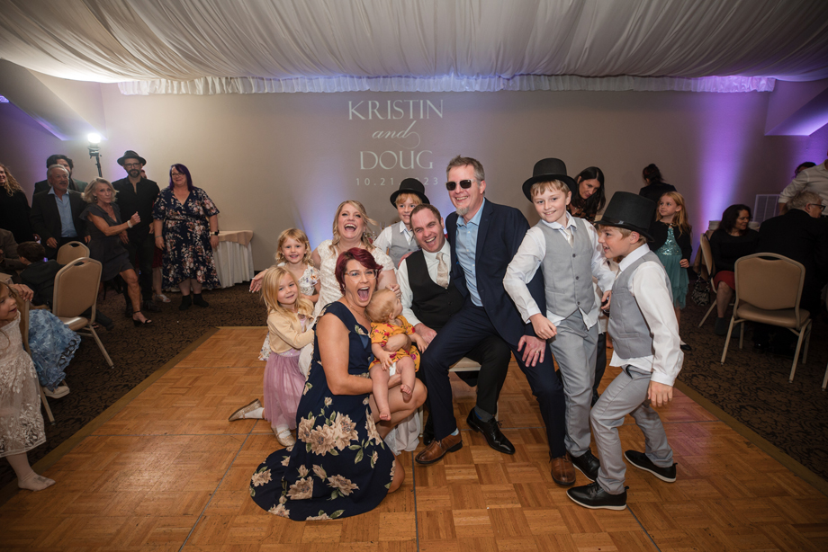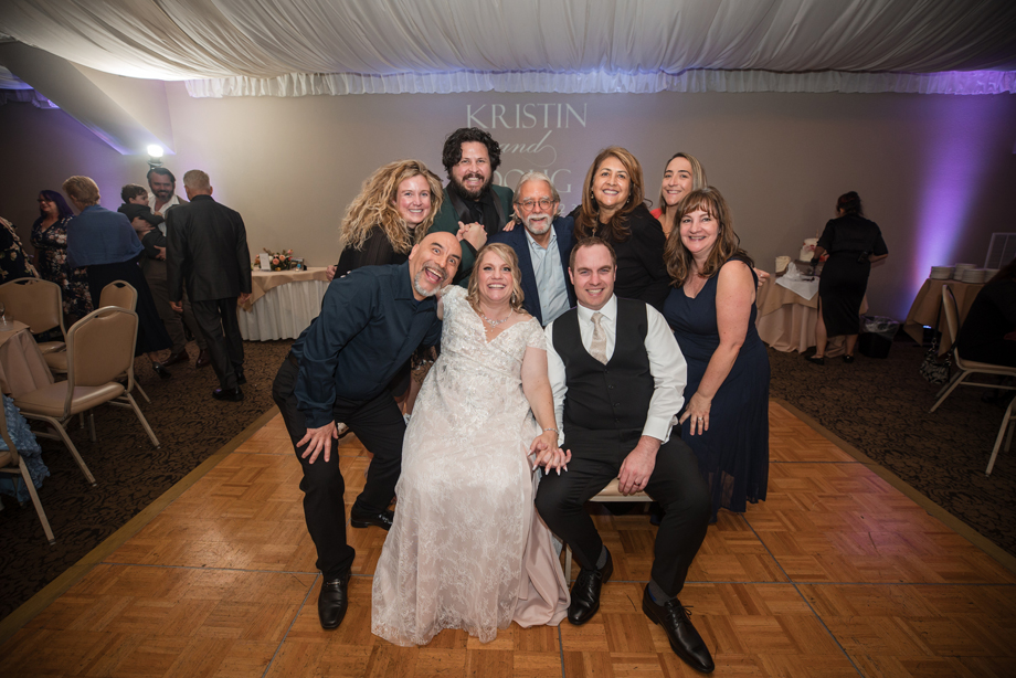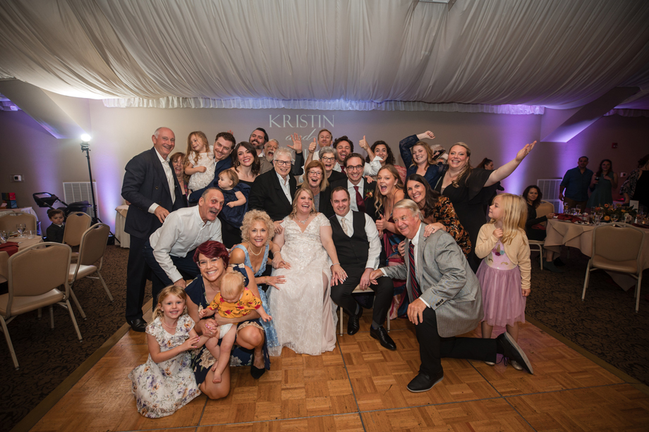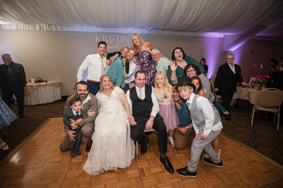We did a photo array on the dance floor where we sat in chairs and during the length of a song, guests came in and out behind us and posed (mostly in funny poses). It was really fun and the guests loved it! We used the song “Paint a Picture” by Tony Lucca. We have since put many of the photos in a collage frame that we’ve hung it in our living room. It was exactly the type of activity and environment we wanted for our reception and, according to our guests, it was very memorable. Our friend, Dawn, also gave a truly memorable toast where she perfectly described our romance and captured the moment flawlessly.