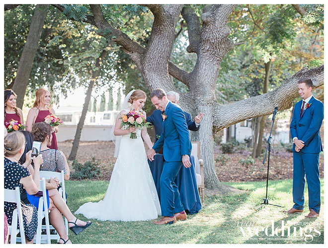 The pair settled on a fall wedding at The Maples in Woodland, just north of Kristin’s hometown of Davis. With the bride-to-be in Arizona for the first year of the engagement, some of the planning was a bit complicated, but everything worked out beautifully with help from family and Jennifer of Tan Weddings & Events. “I think my favorite planning memory is when Evan and my mom went to the open house event at The Maples while I was in Arizona. It warmed my heart to know two of my favorite people were together,” Kristin says.