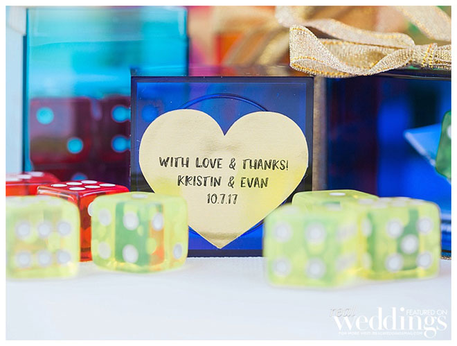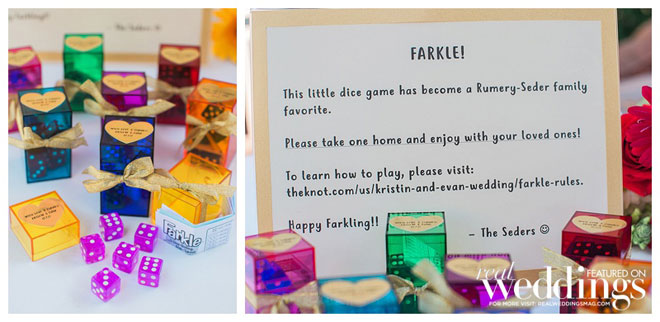 As the night ended, guests got to a take a little of the fun with them thanks to some playful favors—a homemade version of the dice game Farkle, the couples’ favorite game. In addition to many more rounds of Farkle, Kristin and Evan are looking forward to sharing the rest of their lives and, as Kristin puts it, “figuring out how to become better versions of ourselves and better partners to each other.”