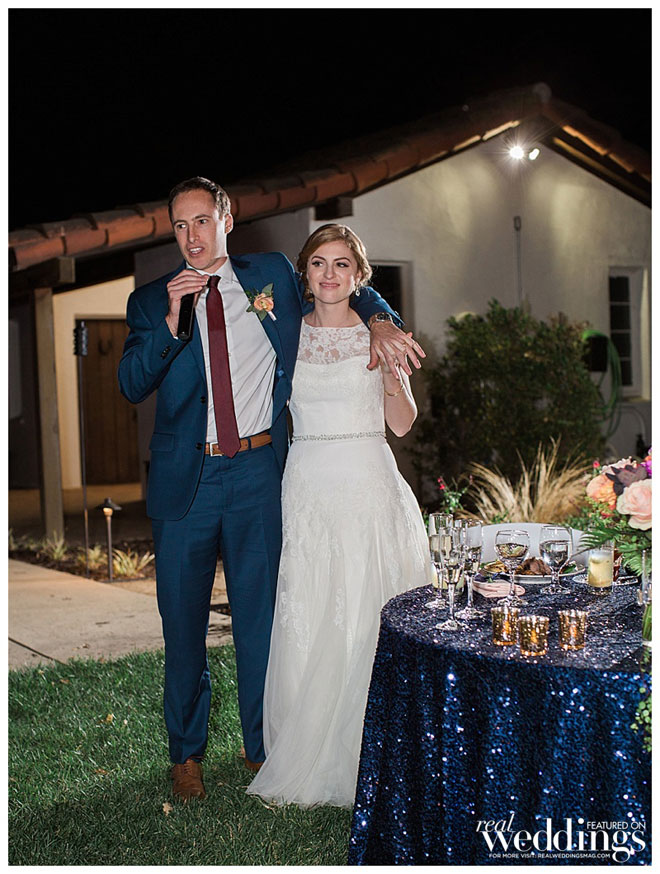 They spent the next six years dating, with more than half of that being long-distance, but in June of 2016, Evan hatched an adorably nostalgic plan to propose. They met up for the weekend in L.A., and for old time’s sake took a campus tour. He sneakily suggested they break away from the group and walk through their favorite parts of campus. “We found a nice tree, and sat and looked out over our beautiful alma mater. When we got up to go to the student store, Evan said, ‘Before we go,’ and I turned around and didn’t see him. I looked down, and he was on one knee with a beautiful ring!” Kristin remembers.