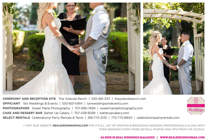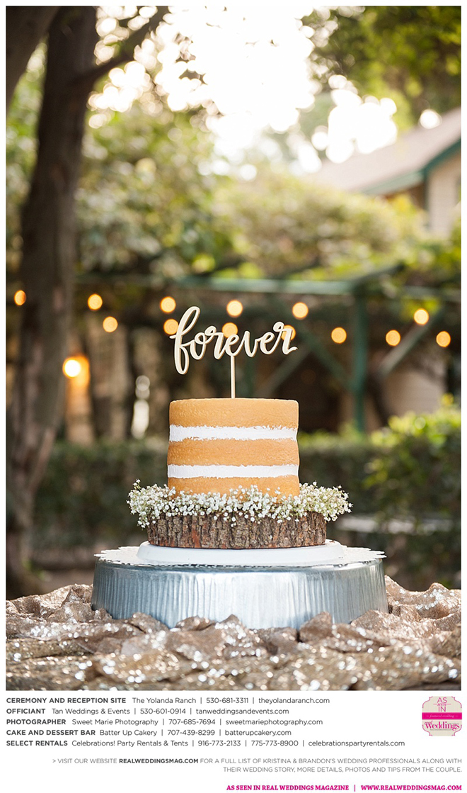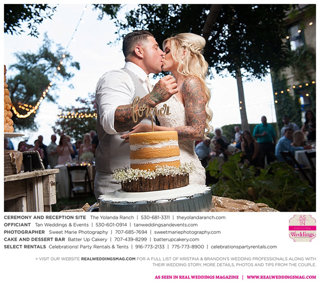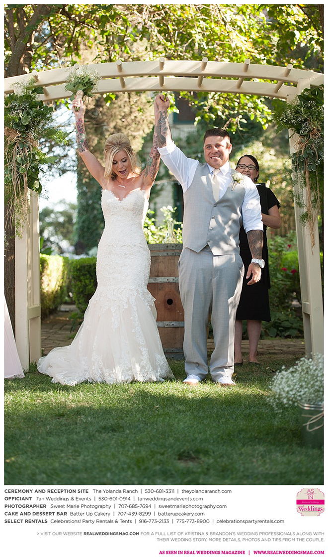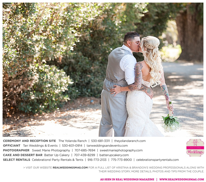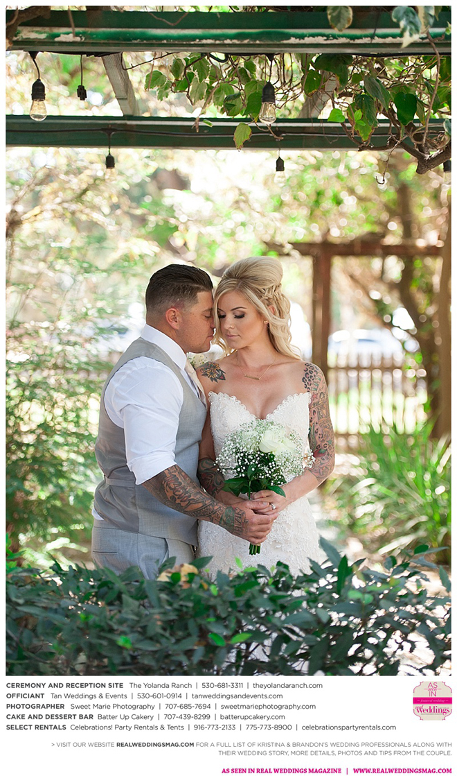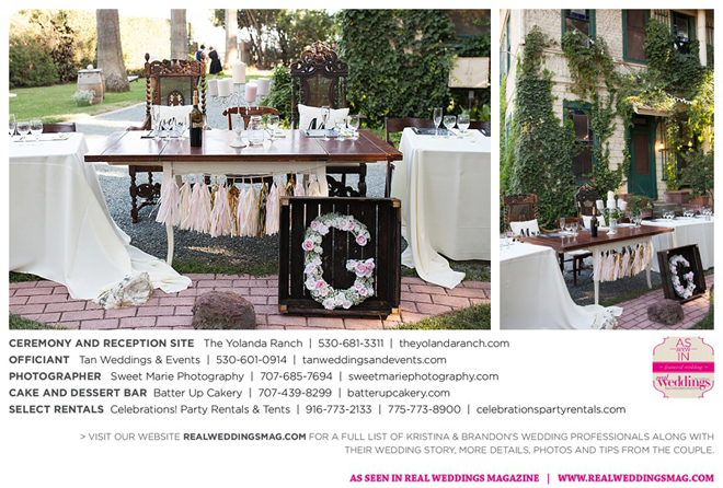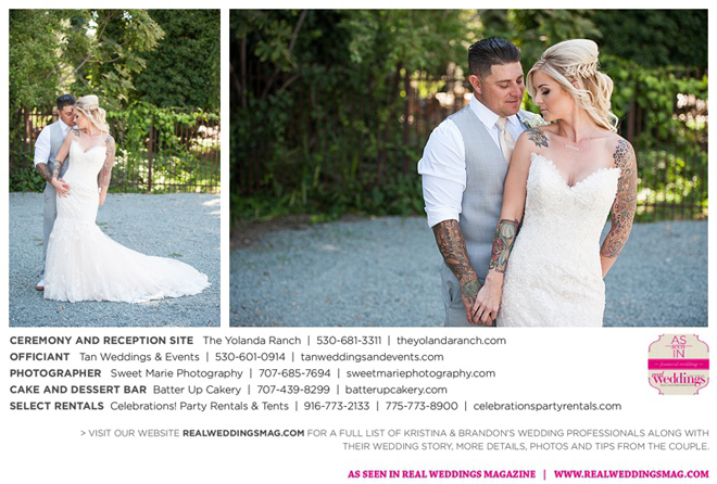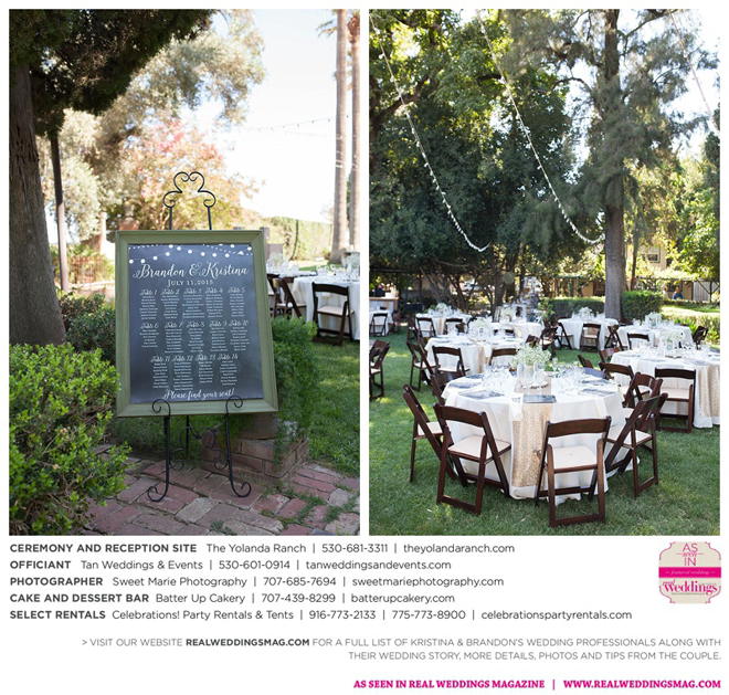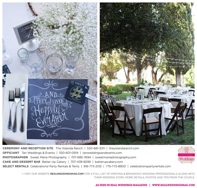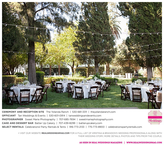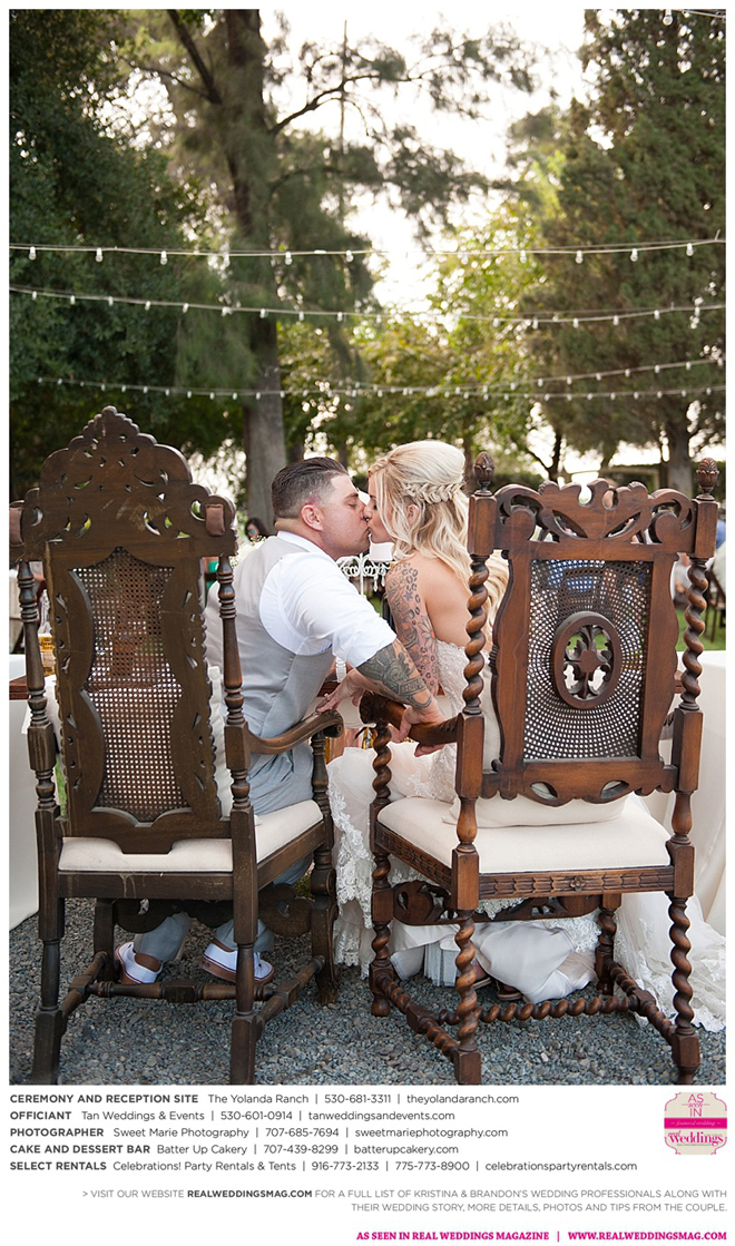 Both the ceremony and reception were held at the beautiful Yolanda Ranch in Woodland. “It was very laid-back and [full of] summer magic,” Kristina recalls. “The string lights above the reception area set the perfect mood for the evening and everyone had a really good time.
