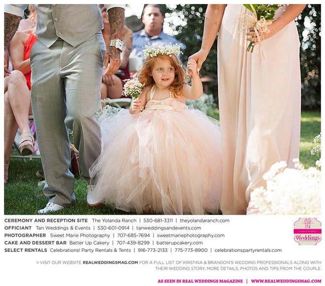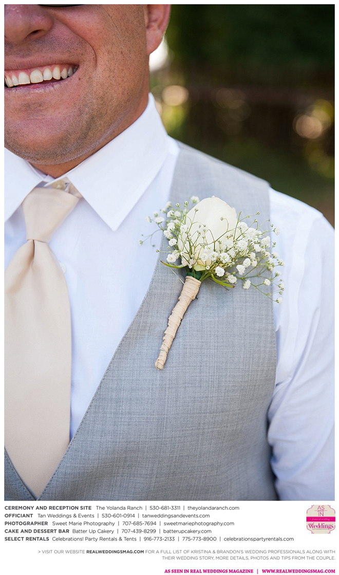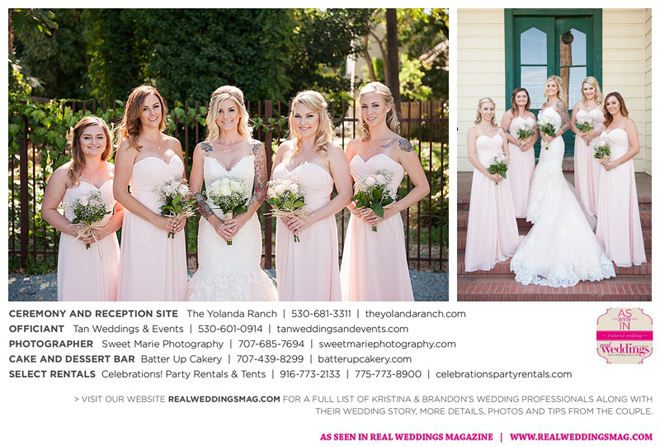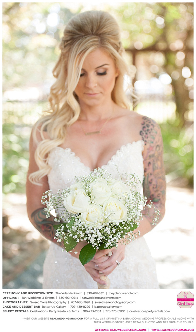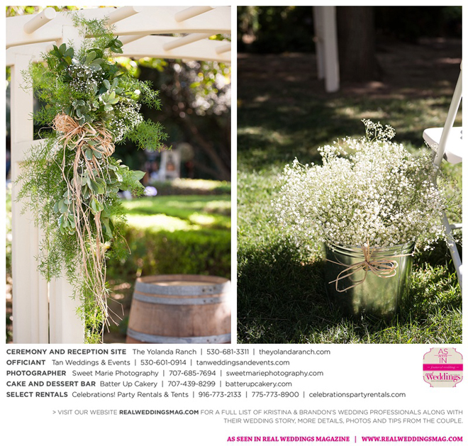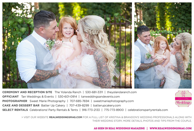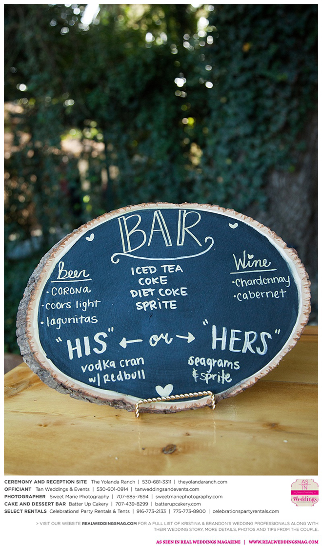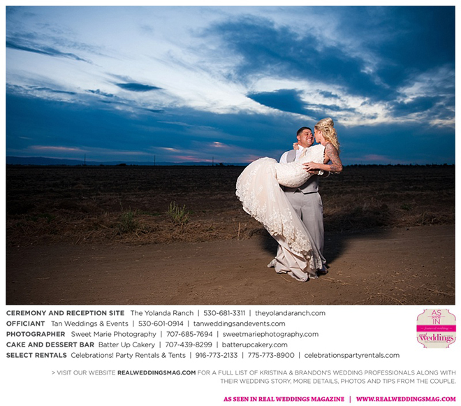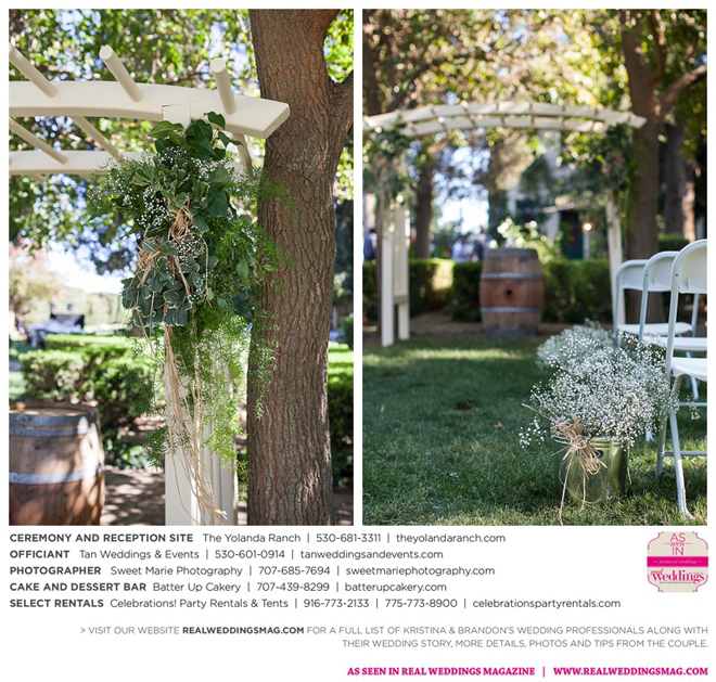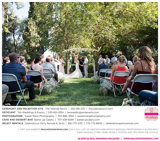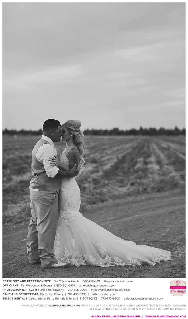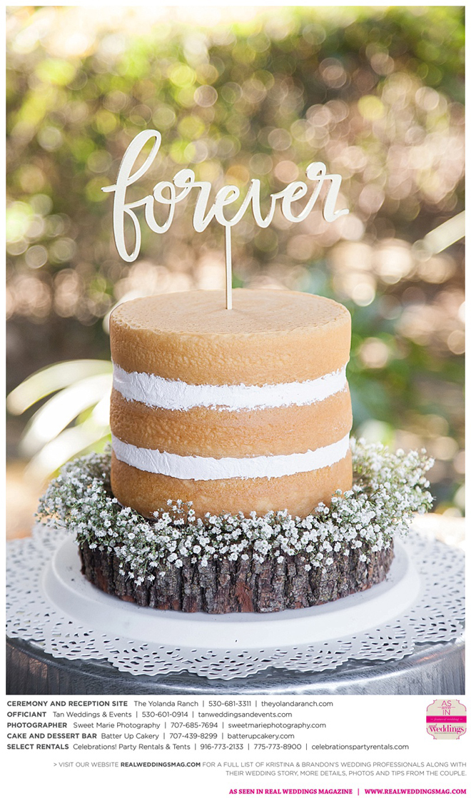 Both the ceremony and reception were held at the beautiful Yolanda Ranch in Woodland. “It was very laid-back and [full of] summer magic,” Kristina recalls. “The string lights above the reception area set the perfect mood for the evening and everyone had a really good time.