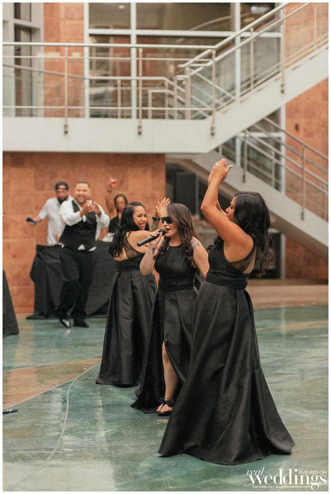The celebration then moved to a second venue for the reception, which was also filled with moments Tina lovingly remembers. “My favorite part was my best friend’s toast, which was a rap and dance using the Fresh Prince of Bel-Air theme music,” she says, “but she plugged in her own words to describe how Russ and I met and fell in love.”