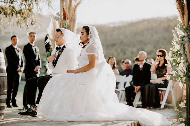 During the outdoor ceremony, the couple incorporated elements of Kristy’s Filipino culture that spoke to the promises they were making to each other. The couple opted for a buffet-style dinner after the vows as they wanted the guests to mingle and be social—but then, it was right to dancing. “Our reception was a big party thanks to our DJ doing an awesome job with mixing in old school hip hop, R&B and more recent hits of today,” says Kristy. “The dance floor was filled the entire night.”