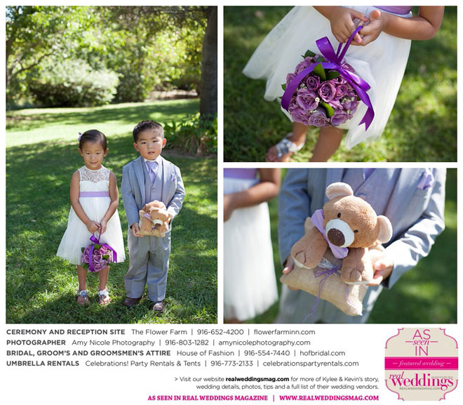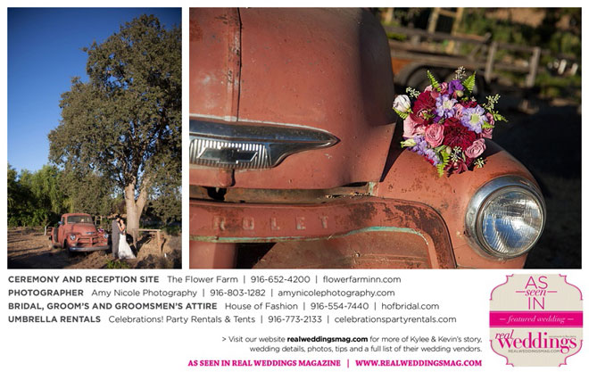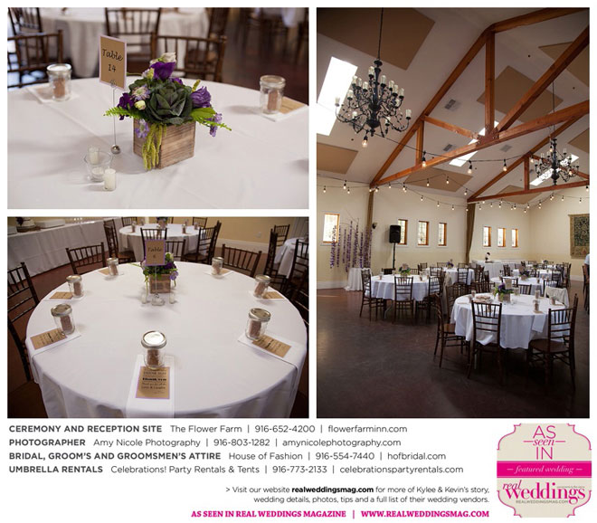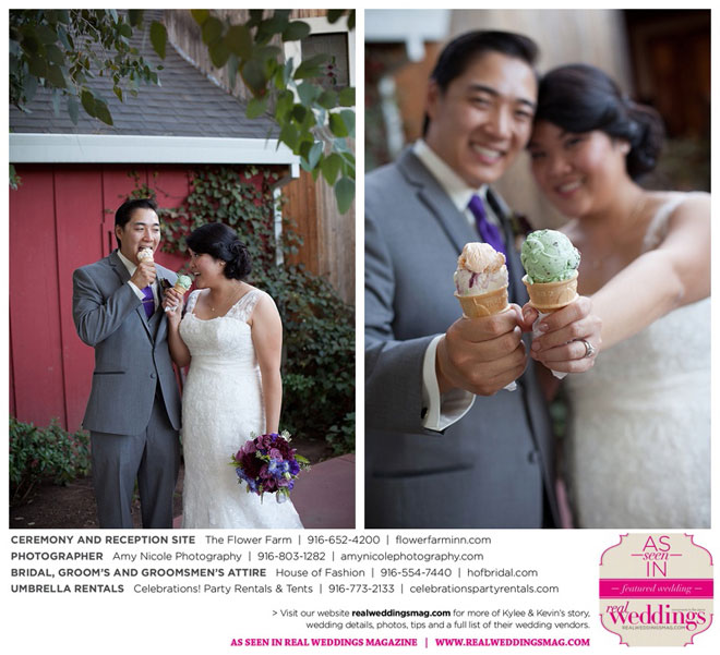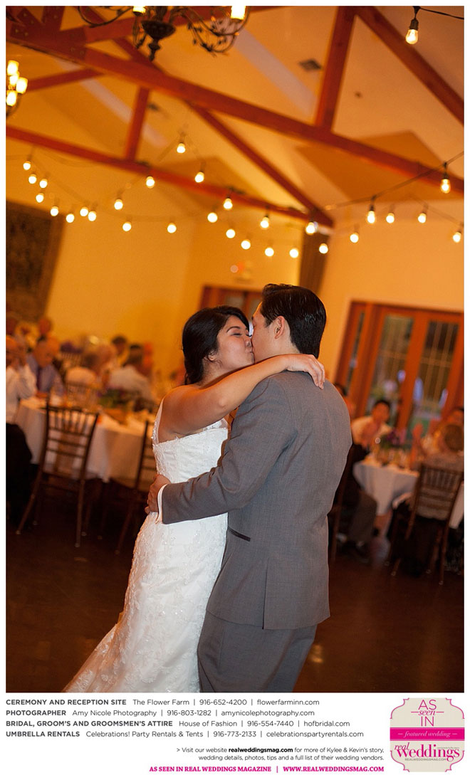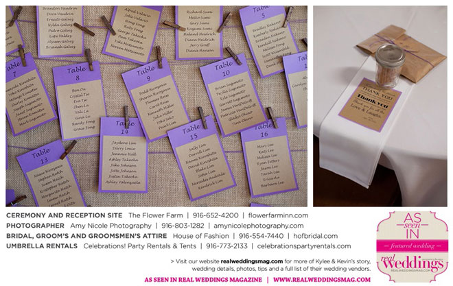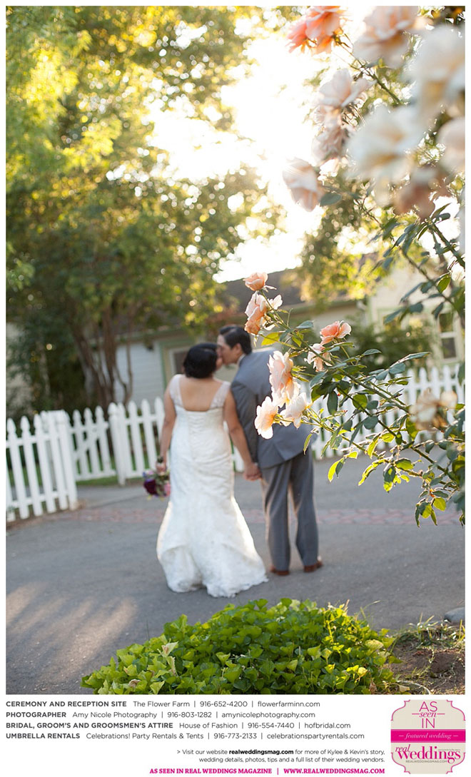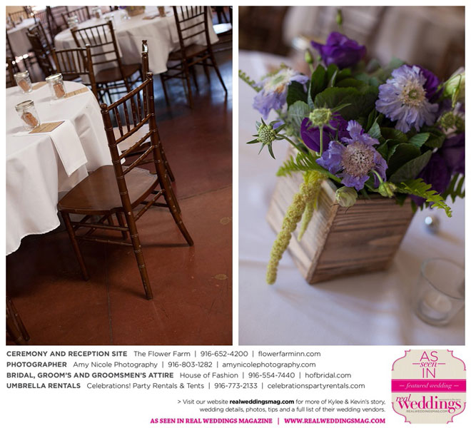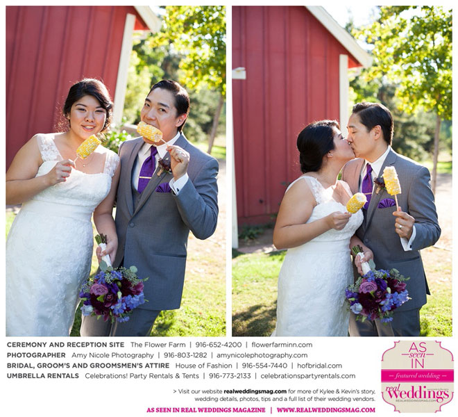 The outdoor ceremony was held at The Flower Farm under a beautiful tree. Kylee’s uncle Alvin, whom she says has always been like a second father, officiated. “We made our wedding quite the family affair. My uncle was the officiator and Kevin’s cousin and her kids played the ceremony music. The ceremony was romantic and tranquil. We really felt loved by all of our close family and friends, especially since our family was so involved.”