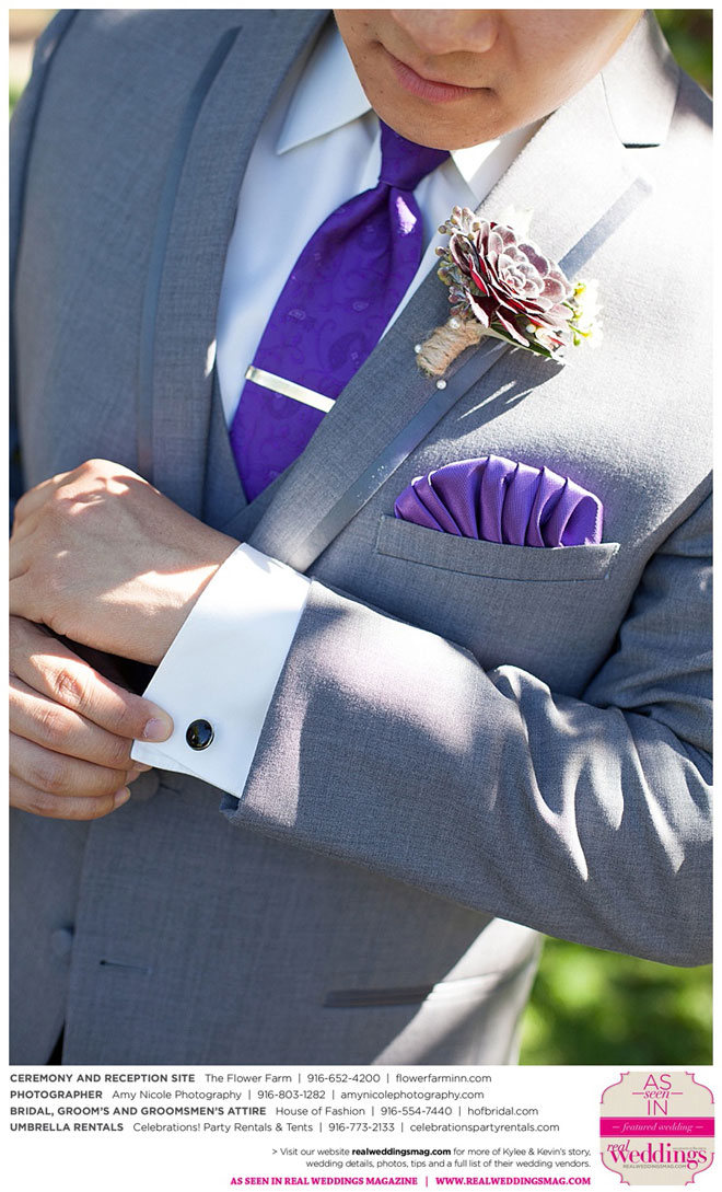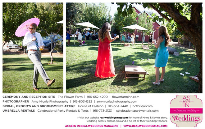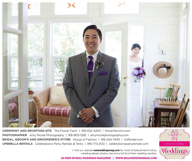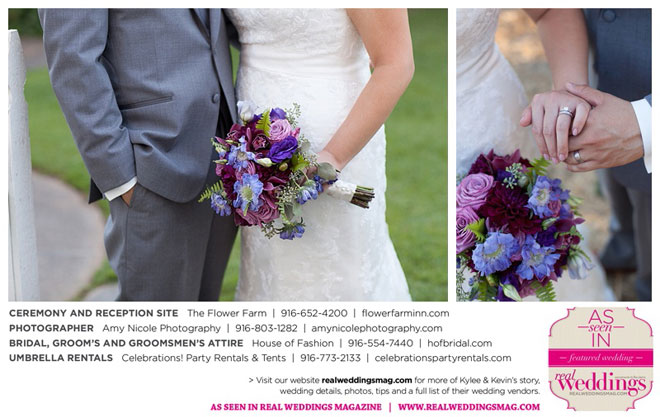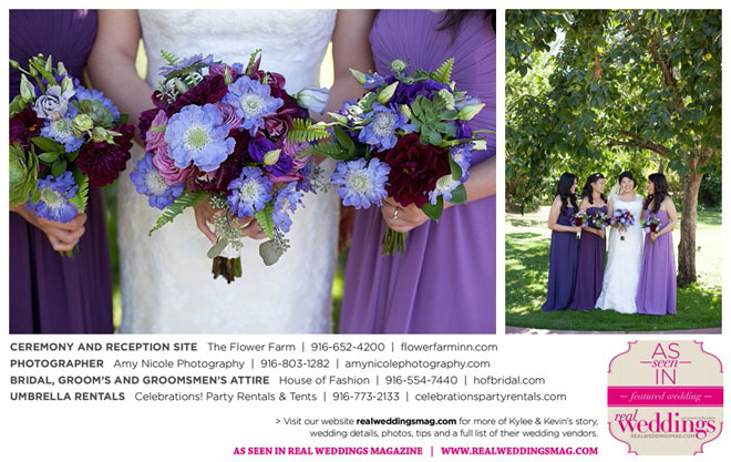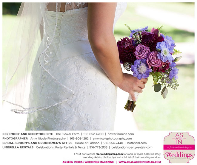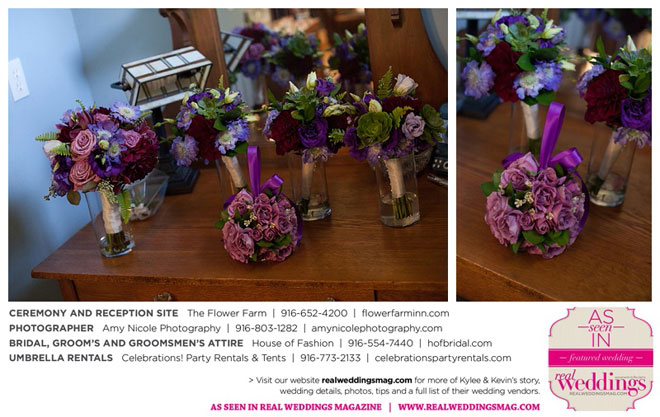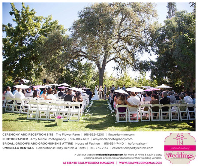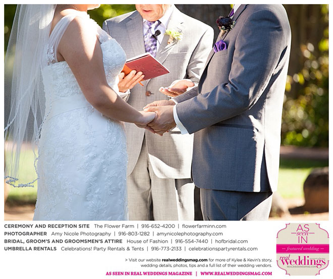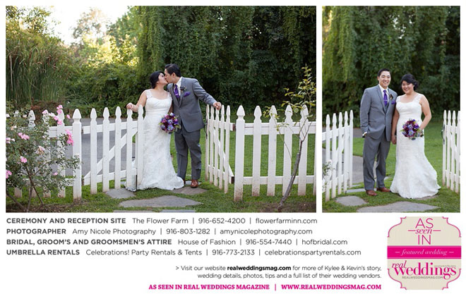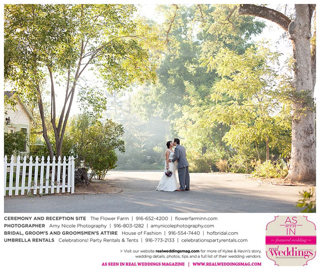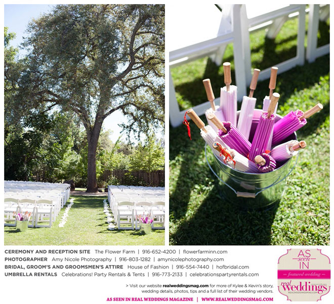 The outdoor ceremony was held at The Flower Farm under a beautiful tree. Kylee’s uncle Alvin, whom she says has always been like a second father, officiated. “We made our wedding quite the family affair. My uncle was the officiator and Kevin’s cousin and her kids played the ceremony music. The ceremony was romantic and tranquil. We really felt loved by all of our close family and friends, especially since our family was so involved.”