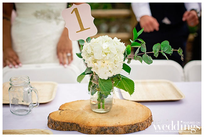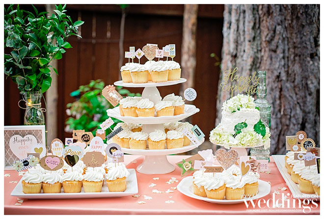 The bride’s favorite wedding detail? “All of the little homemade items that I made,” she says, noting how fun it was to make the cupcake toppers, table numbers and other decorations.
