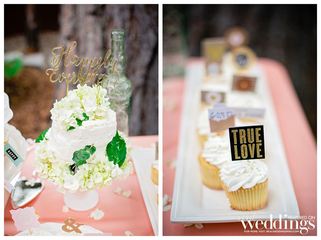 “I wanted everything to feel like an enchanted, magical forest,” says Christina, who didn’t have an official color scheme, but used gold and light pink to accent the venue’s natural beauty.