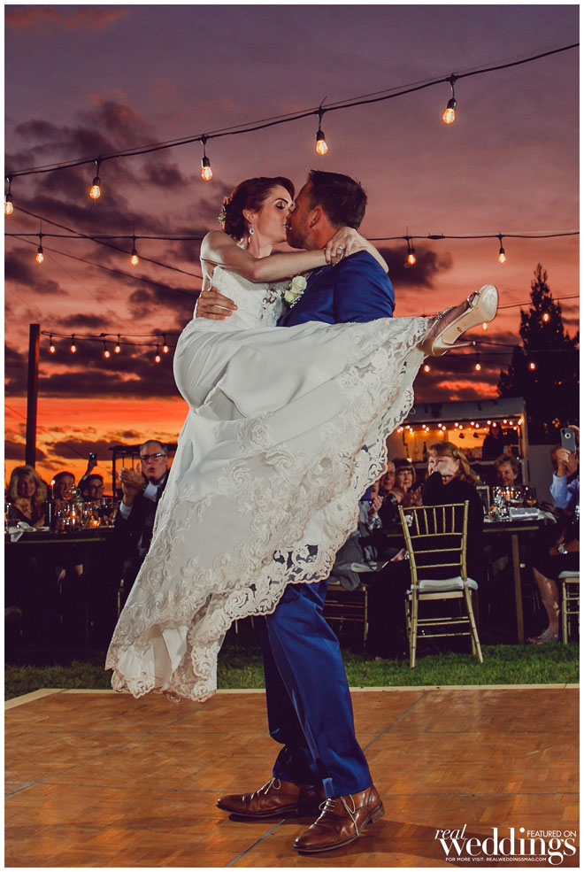 They kicked off the reception with the first dance. Lara, coming from a lifelong career in contemporary dance, definitely wanted it to be special. Preston on the other hand, a “two left feet” kind of guy, was terrified. “We said for months we need to practice, to get it right, it had to be perfect,” says Lara. But in real life, the bride choreographed it the night before the wedding, and then the morning of the wedding, the couple practiced for 30 minutes then went back to getting ready for the big day. “We danced to Haley Reinhart’s rendition of Elvis Presley’s ‘Can’t Help Falling in Love.’ It was a romantic dance that really stopped the room. Preston actually remembered all the steps… almost.”
