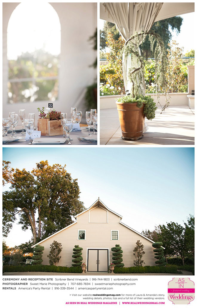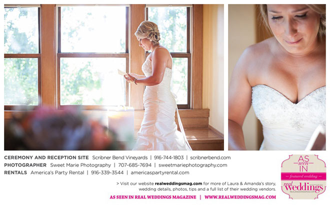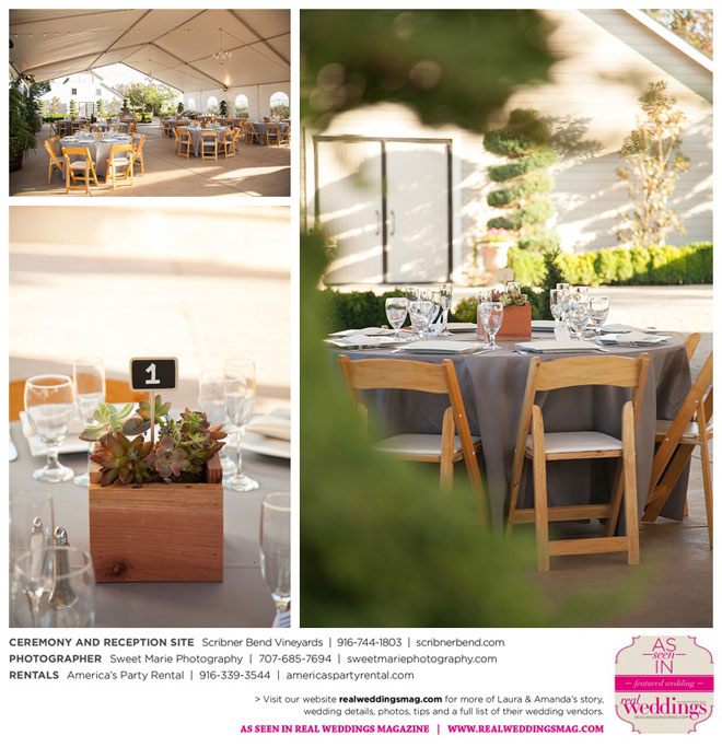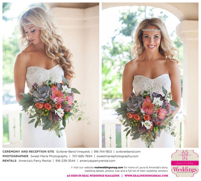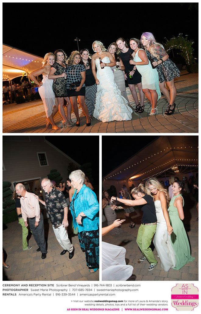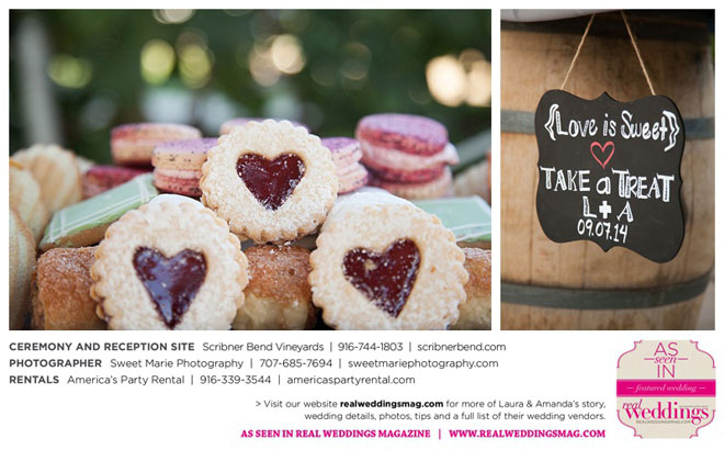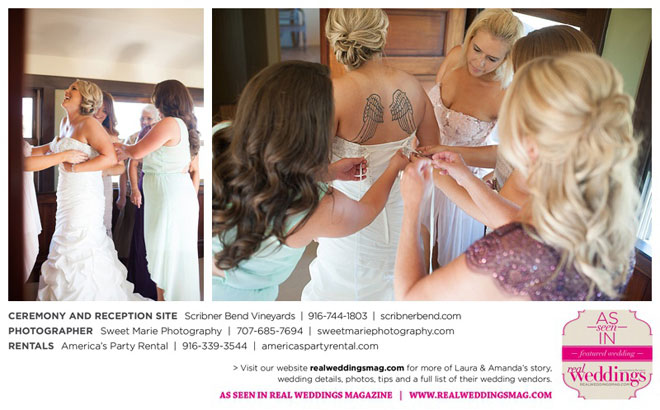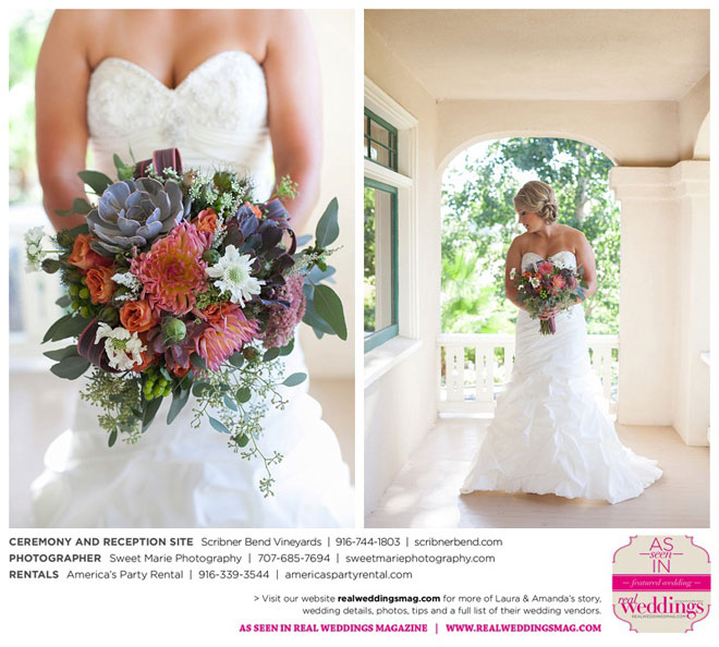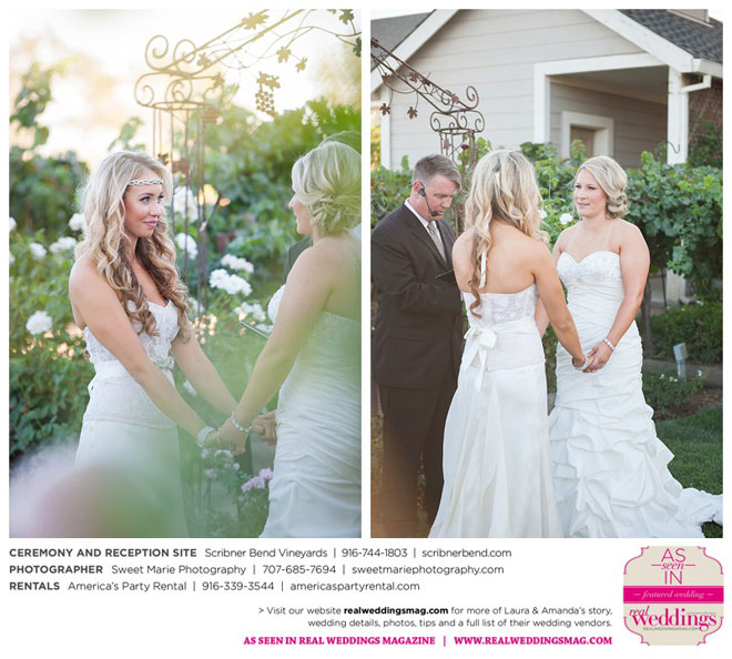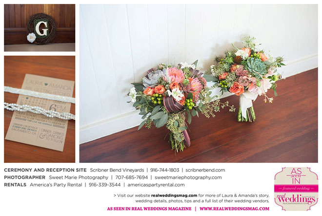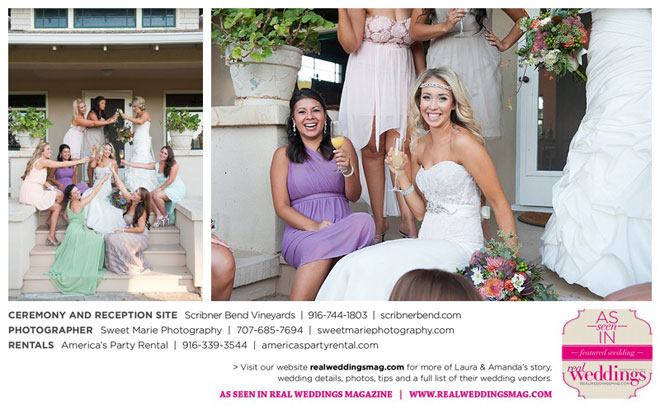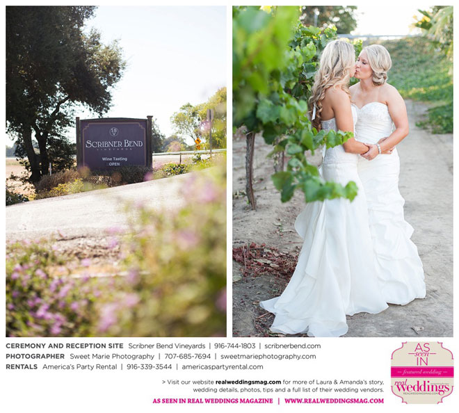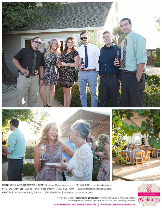 Two years later, they married in an outdoor ceremony and reception at Scribner Bend Vineyards. They loved the venue’s look and feel. The cottage home where they got ready reminded Laura of her hometown in Missouri, which also made her family feel welcome.
