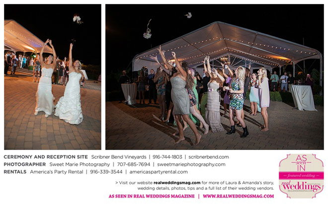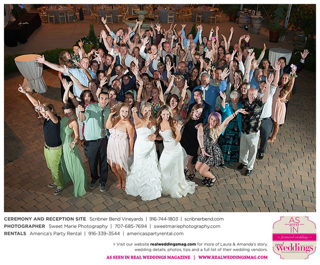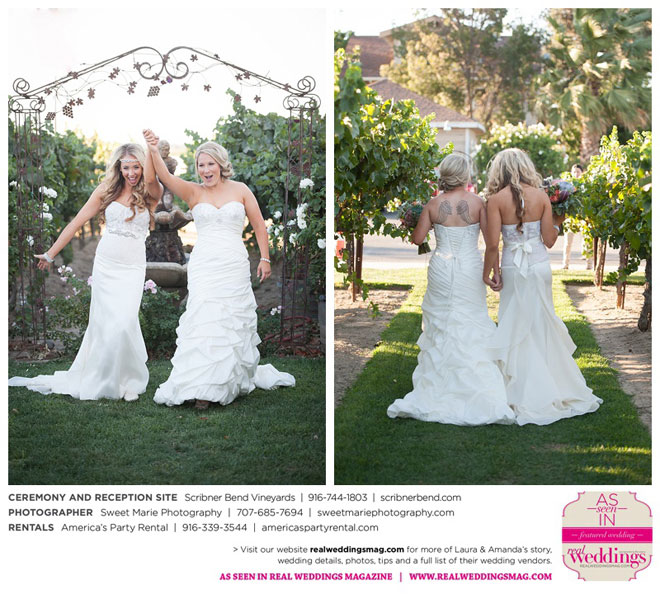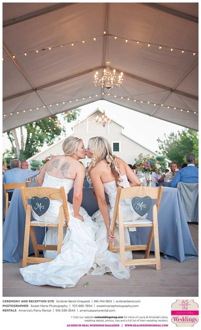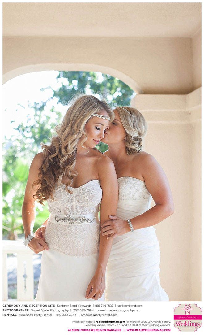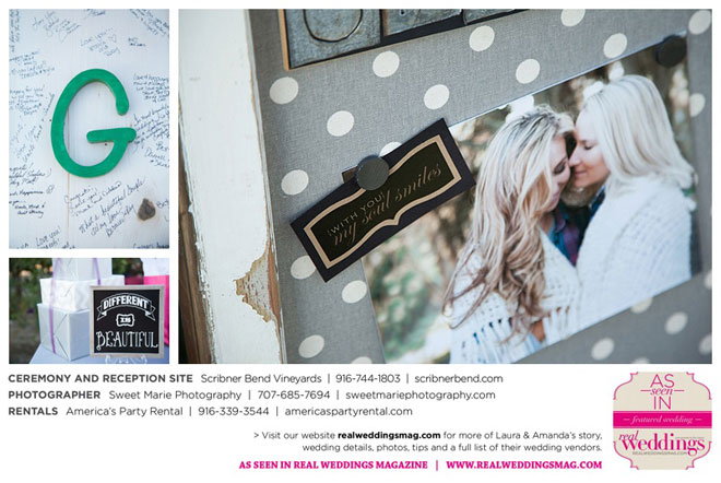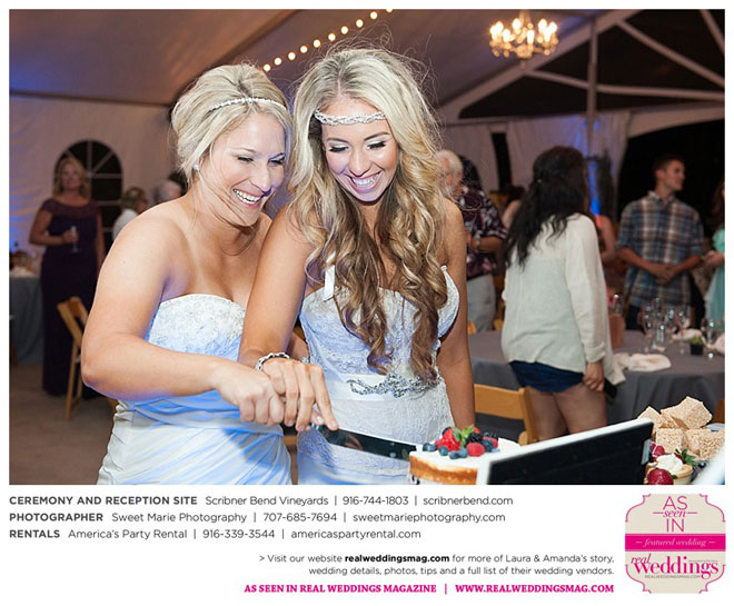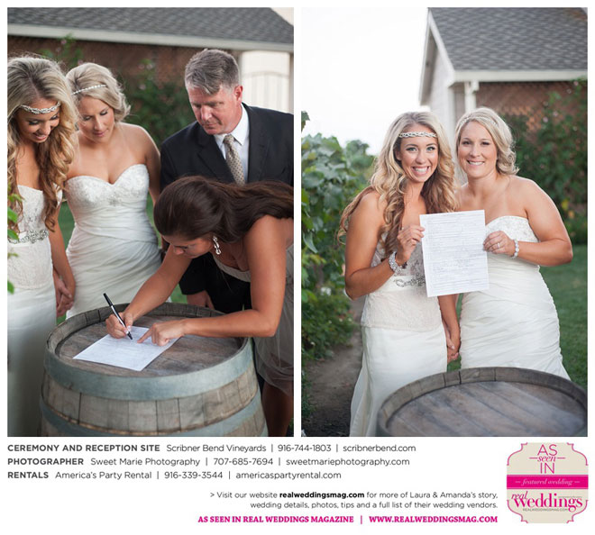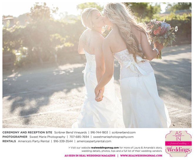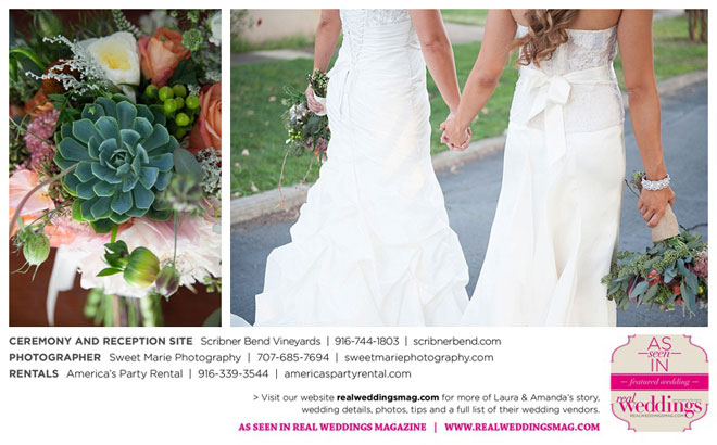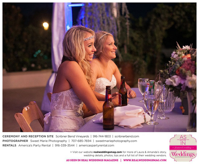 After three years of dating, the two got engaged on a weekend getaway to Mendocino. Amanda wrote, “Will you marry me?” in the sand, dropped to one knee and proposed. Laura said yes, and the two soon started planning their wedding.