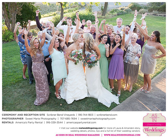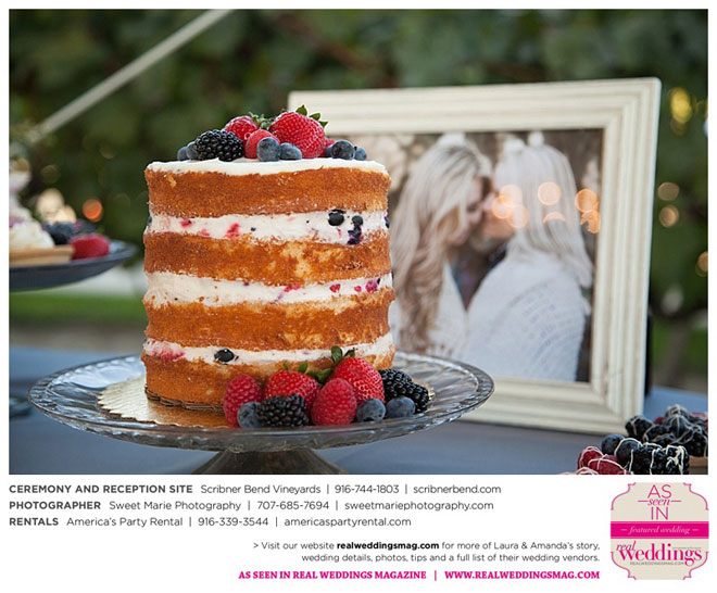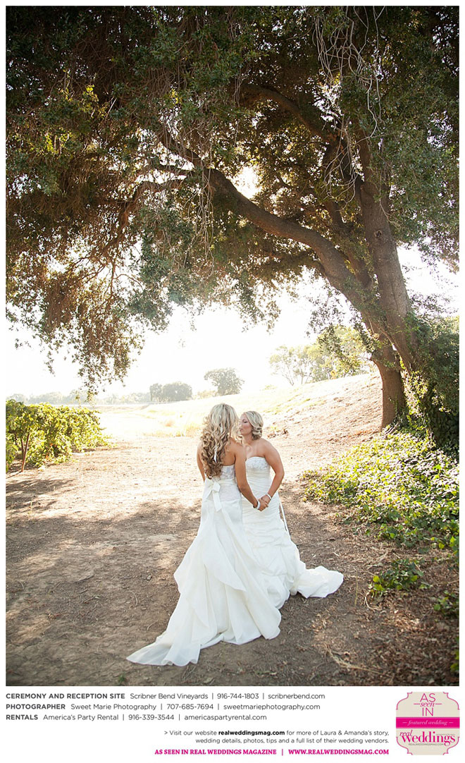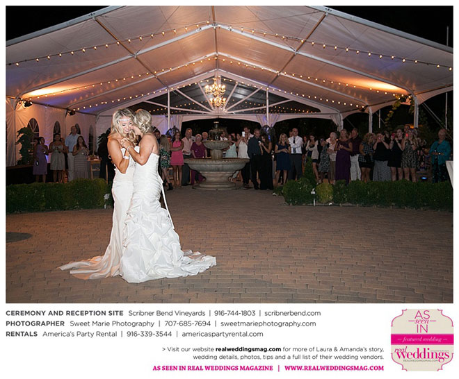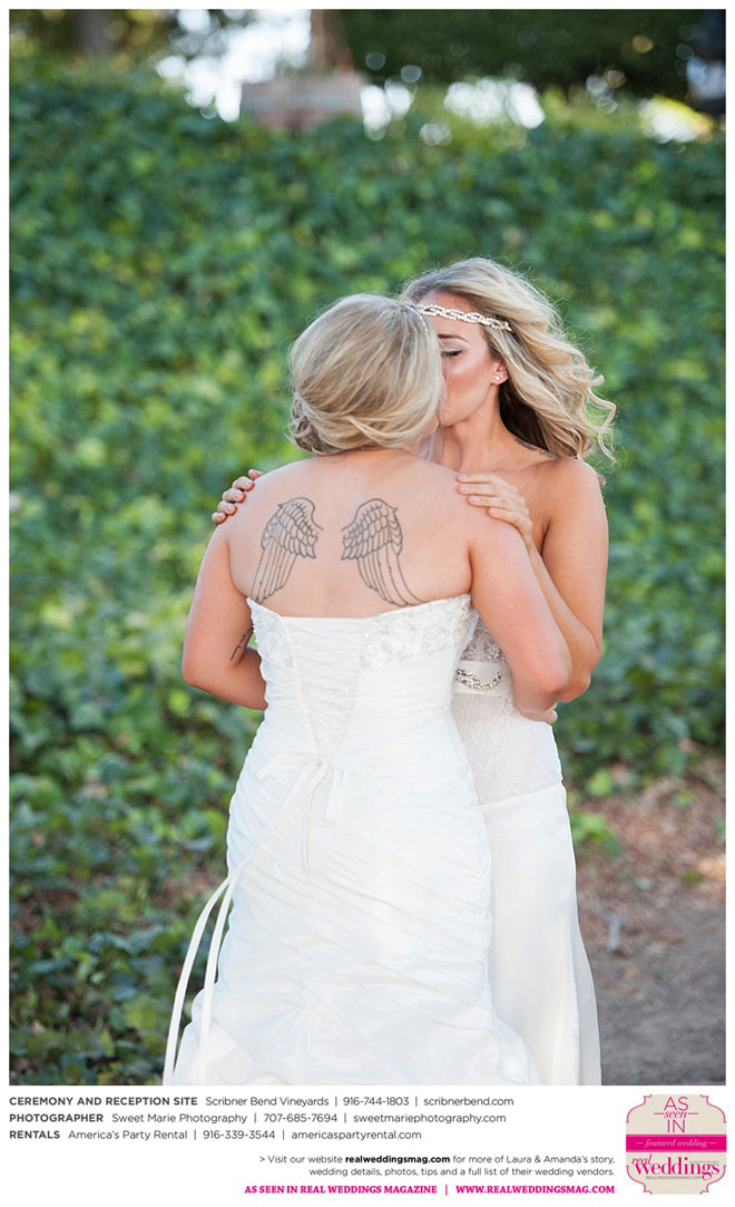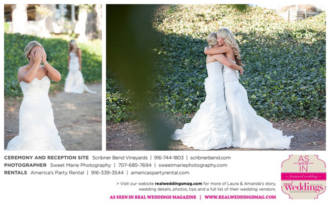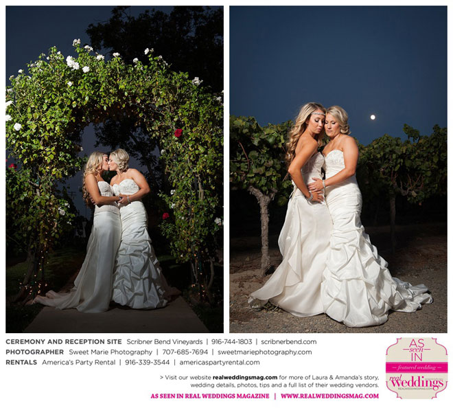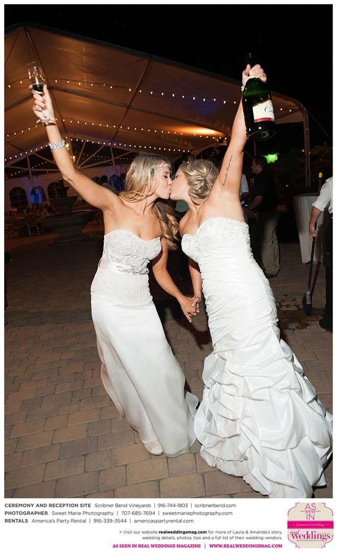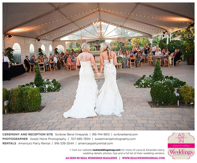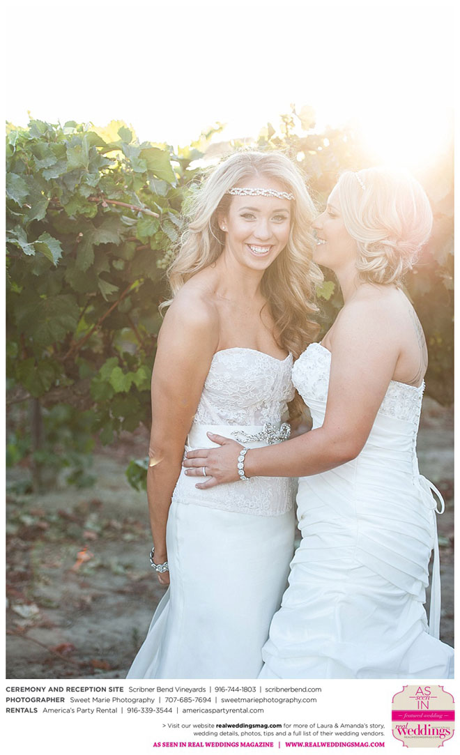 After three years of dating, the two got engaged on a weekend getaway to Mendocino. Amanda wrote, “Will you marry me?” in the sand, dropped to one knee and proposed. Laura said yes, and the two soon started planning their wedding.
