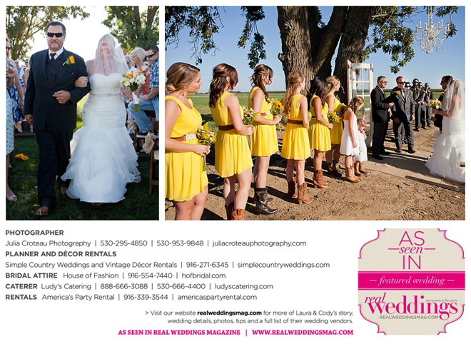 That was in October, and with Cody much recovered, they began planning their wedding for the following March—a country wedding with a formal touch on Laura’s parents’ property.