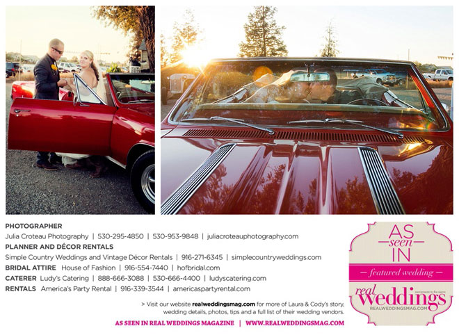 Everything about their wedding was personal and special. Laura and her flower girls arrived in her brother’s candy apple red 1967 Chevelle; and their officiant was Laura’s elementary school principal and family friend, who performed the wedding ceremony for her brother 10 years before.