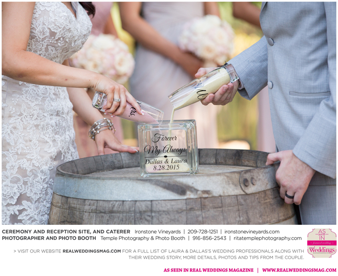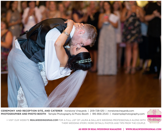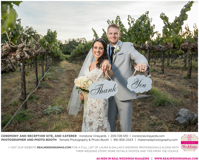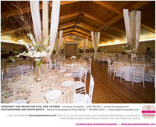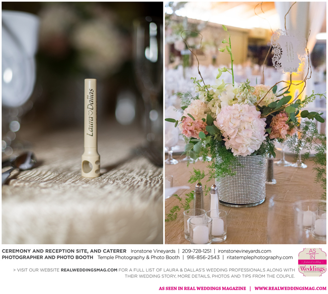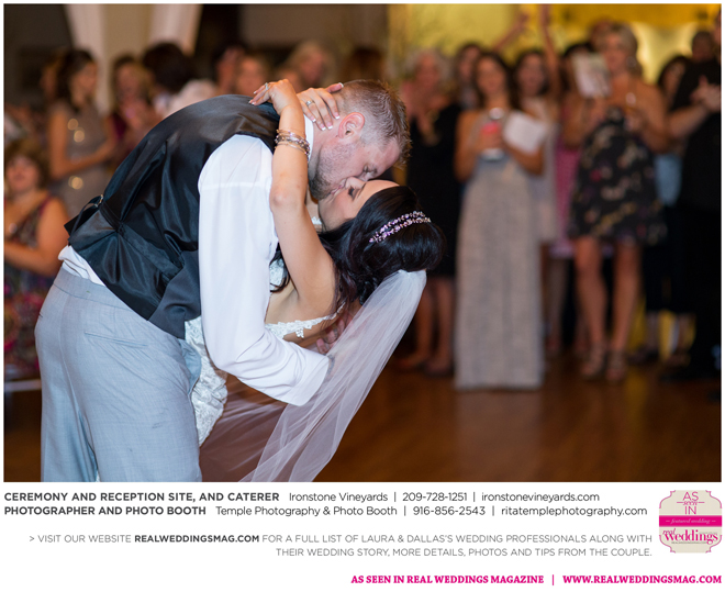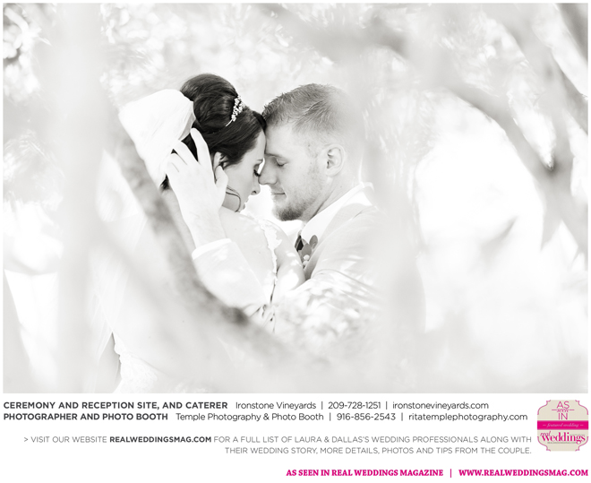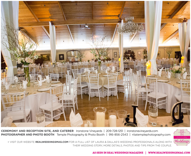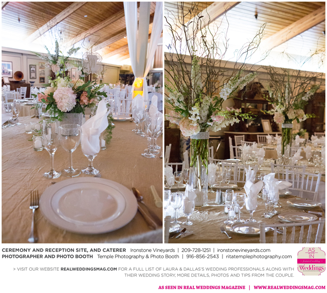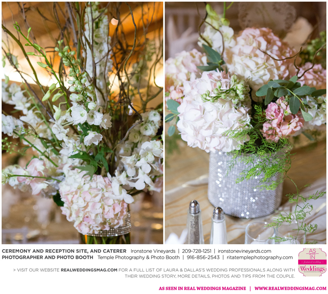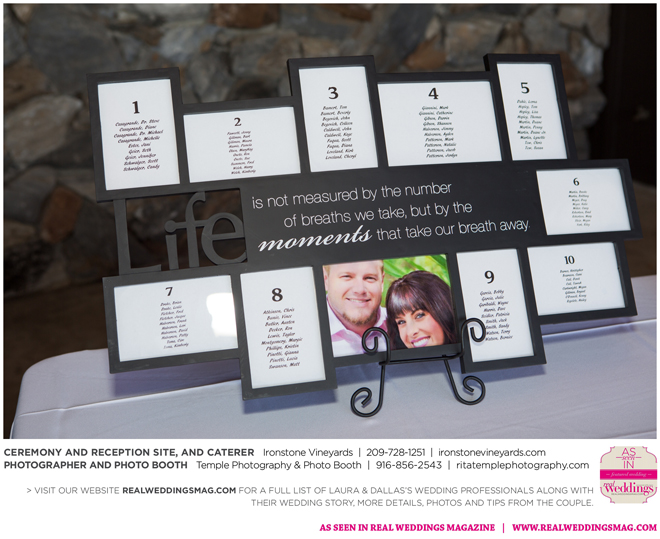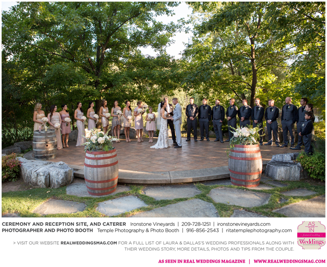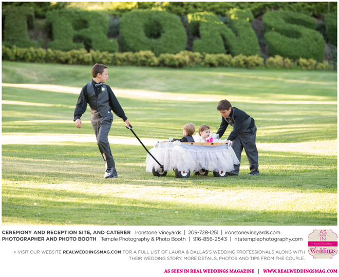 They married eight months later in a simple ceremony at Ironstone Vineyard in Murphys, CA. They love the atmosphere at the winery, which they go to often. They took photos all over the lush vineyard and celebrated their reception at the venue too.