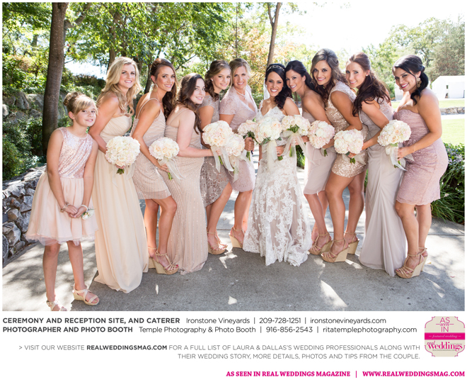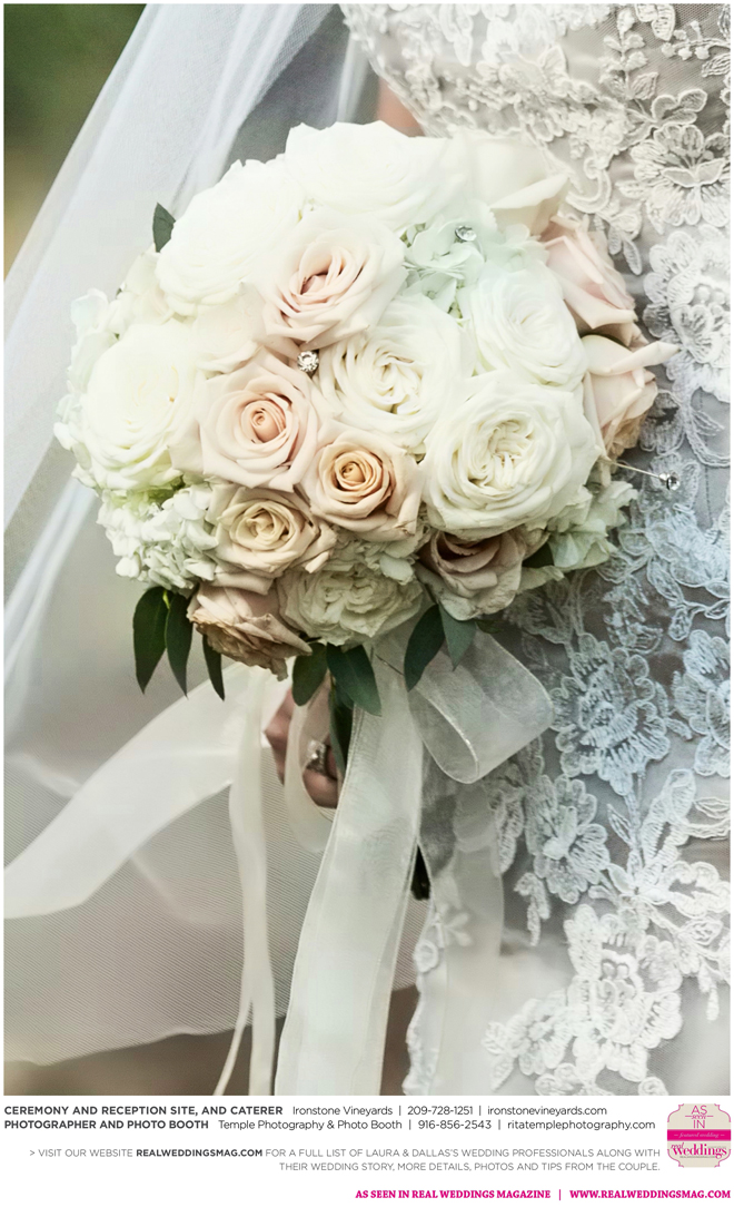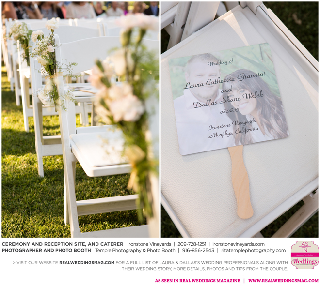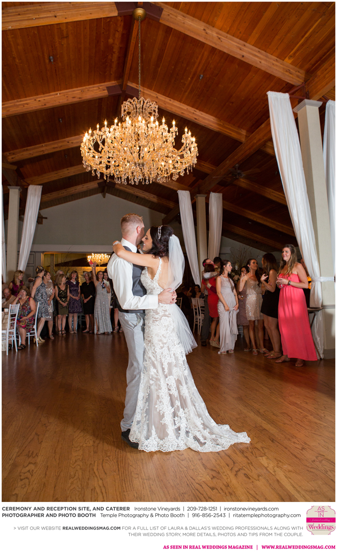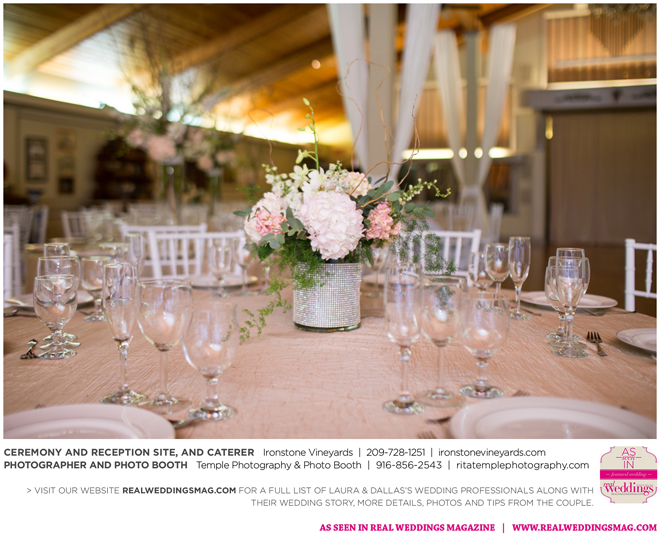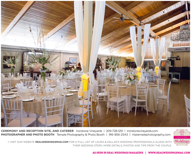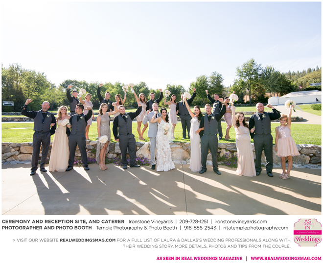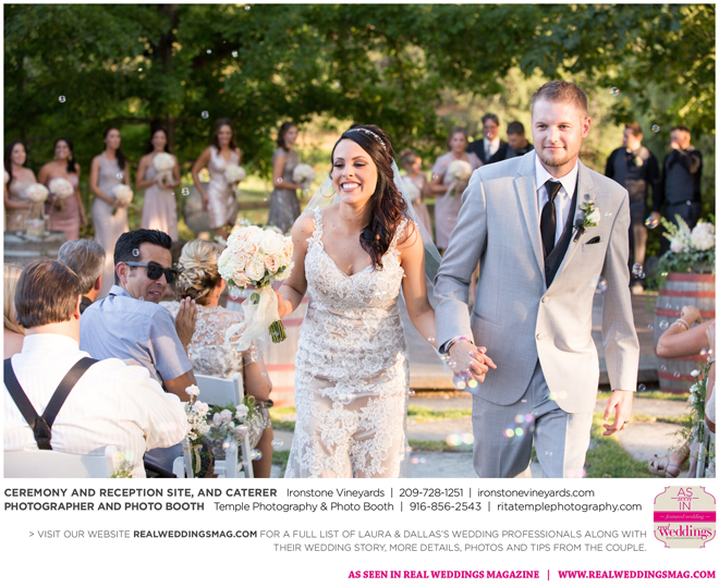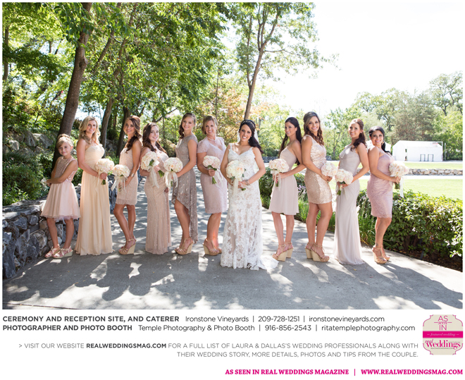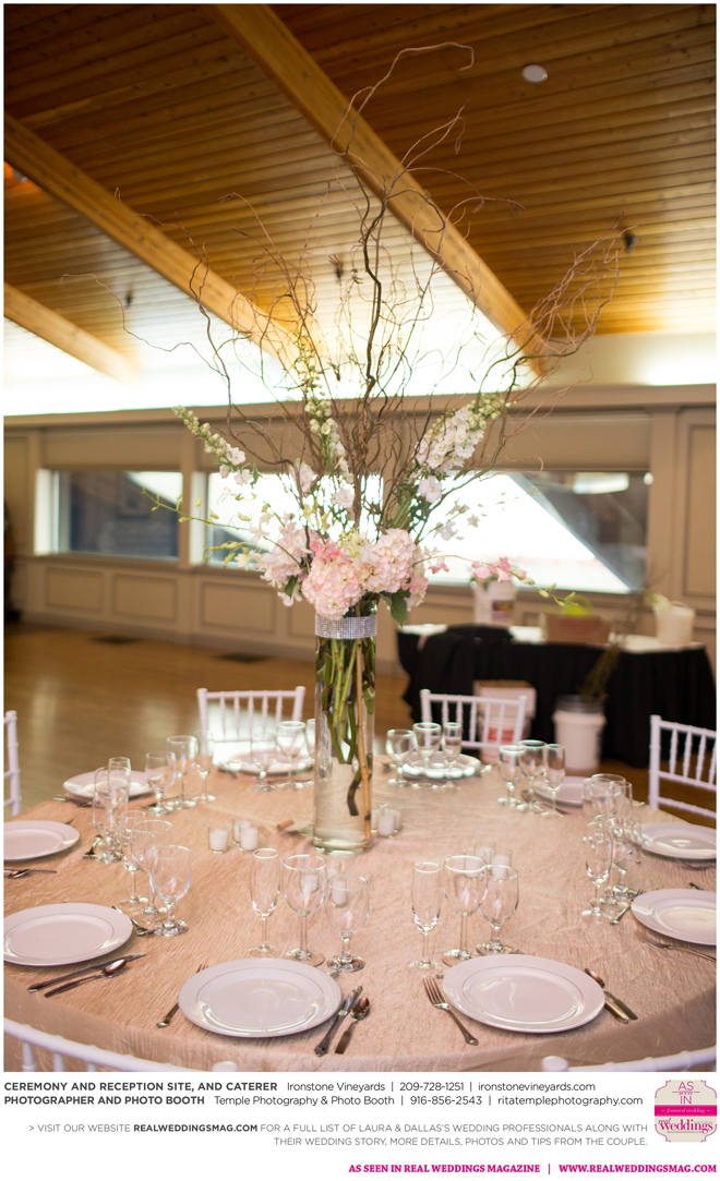 They married eight months later in a simple ceremony at Ironstone Vineyard in Murphys, CA. They love the atmosphere at the winery, which they go to often. They took photos all over the lush vineyard and celebrated their reception at the venue too.