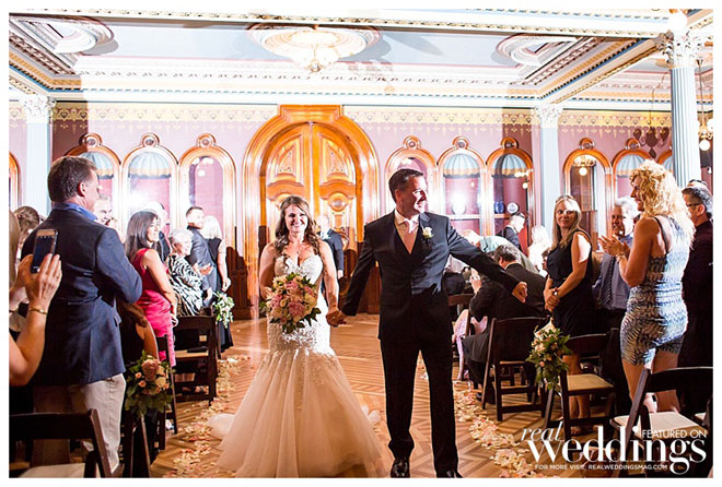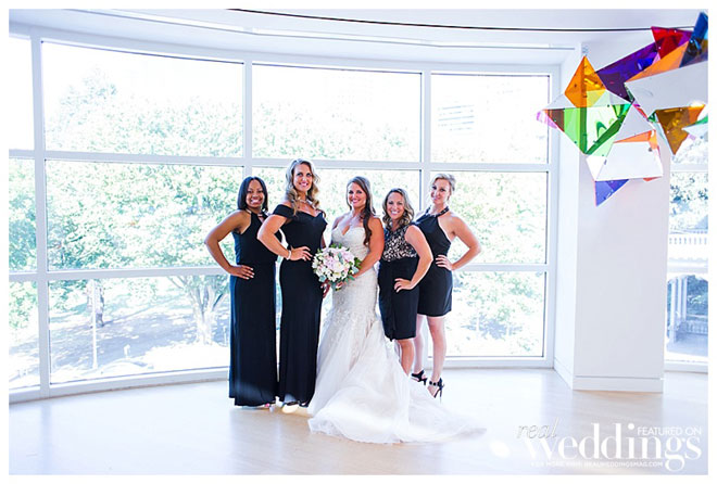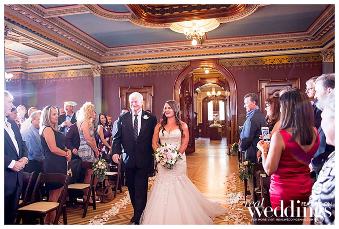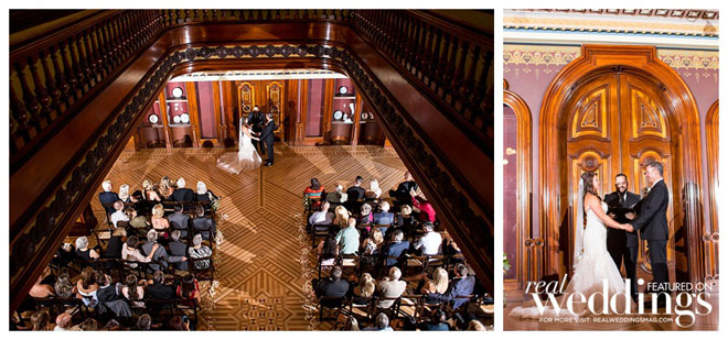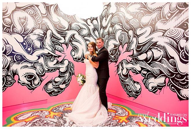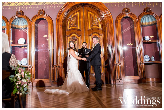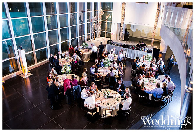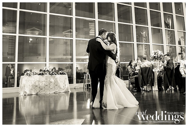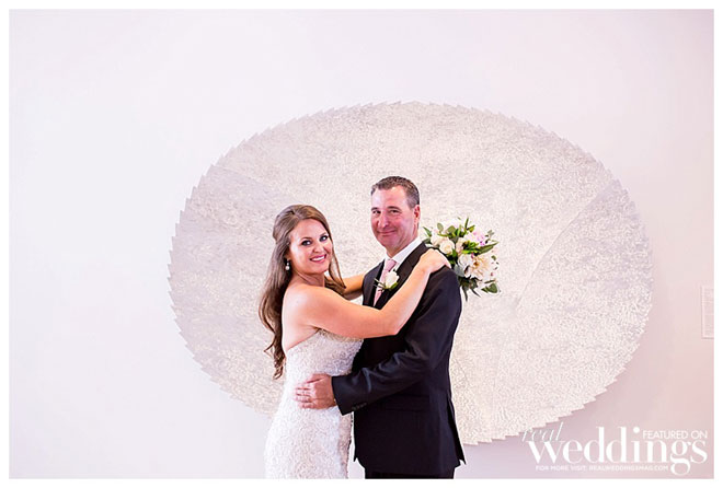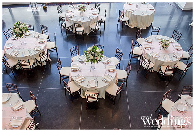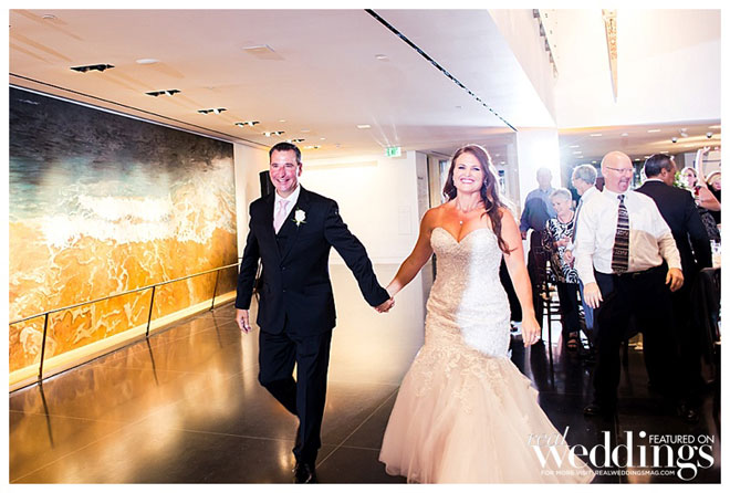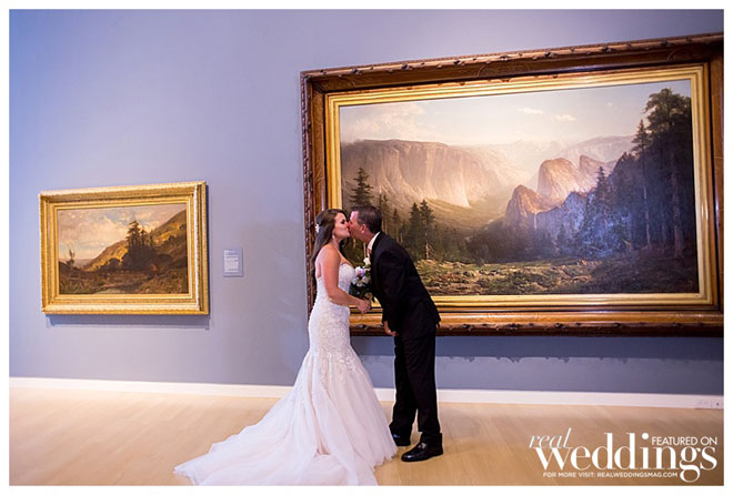The wedding was held in three areas of the Crocker Art Museum: the main mansion for the ceremony, the courtyard for cocktail hour and the Friedman Court for the reception. With 106-degree temperatures outside, an unexpected power outage made for a memorable moment, “It remained out for roughly 20 minutes, but it actually turned out to be a bit of a blessing, as our guests really had the opportunity to talk and laugh since there was no background music,” the bride says.