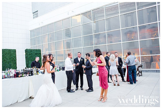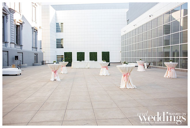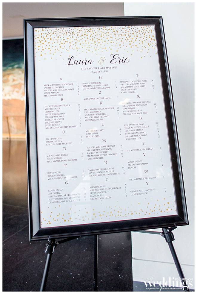 The couple hired a piano player to play while guests arrived at the Crocker Art Museum for the ceremony. In the courtyard, during cocktail and appetizer hour, “We had a fantastic acoustic guitar player sing and play—that was awesome!” Laura recalls.