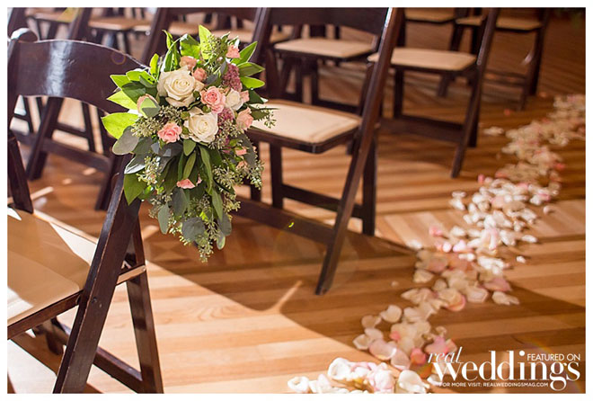 Laura and Eric chose to be alone while exchanging vows. “We did not have bridesmaids or groomsmen,” says Laura. “It made the focus of the wedding on us, which was the point of the day. I’m really glad we made that decision.”