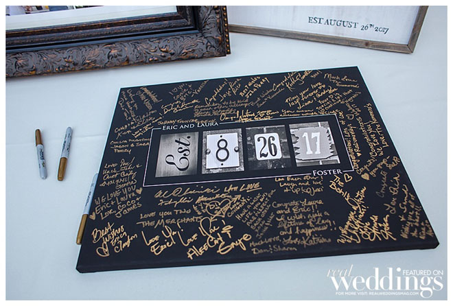 The couple fondly remember their first look before the ceremony, with only their closest friends present. “Eric waited for me in front of a beautiful painting of the Yosemite Valley, and when I came around the corner we were both thrilled, surprised and excited,” says Laura. “We could really feel our love for one another in that moment. Having the first look was another critical decision that I am so glad we made. This was both of our favorite moments.”