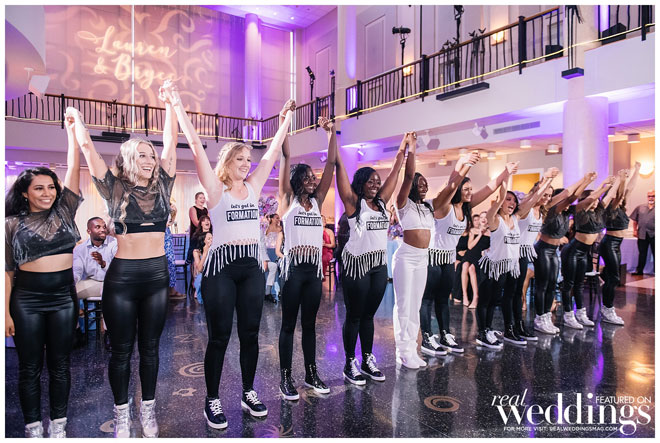 Guests then went upstairs for cocktail hour while their amazing team transformed the downstairs area for the reception. “Our reception was high energy and extremely fun. After the food was served, first and family dances were done and toasts were made, it seemed as if the dance floor was never empty,” remembers Lauren. “In fact, every single person was on the dance floor. As a dancer, that meant the world to me.”