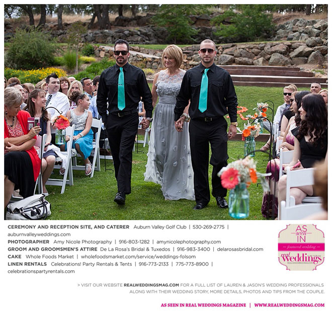 When she saw Jason, Lauren was “overwhelmed with excitement and joy and couldn’t keep from crying.” Jason couldn’t wait to get hitched, saying he was “happy, full of joy and at peace.” The couple shared their own vows as well as traditional ones, and while thunder rumbled during the ceremony, it didn’t rain. “There was changing weather throughout the day and we got lucky,” says Jason.