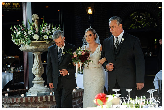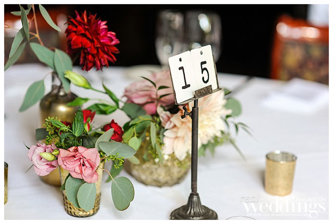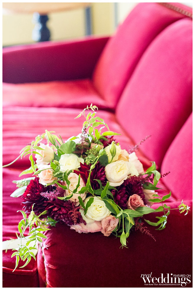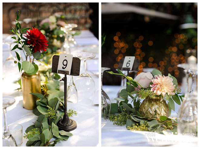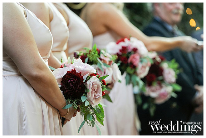 We used a lot of fresh greenery on the table tops; bouquets were lots of greenery with budding blush roses, calendulas, some texture flowers, deep red colors as well…very romantic.