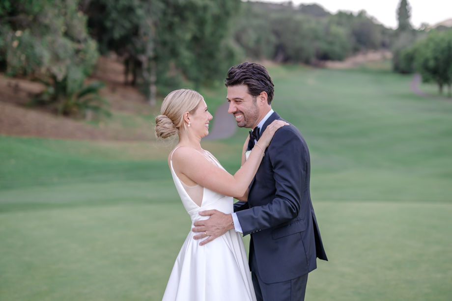 The guests started arriving, and I needed to move from the mansion to the clubhouse before the ceremony without anyone seeing me, so we had my bridesmaids hold a tablecloth around me and walked past the guests.