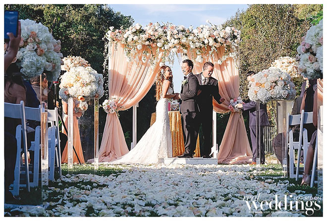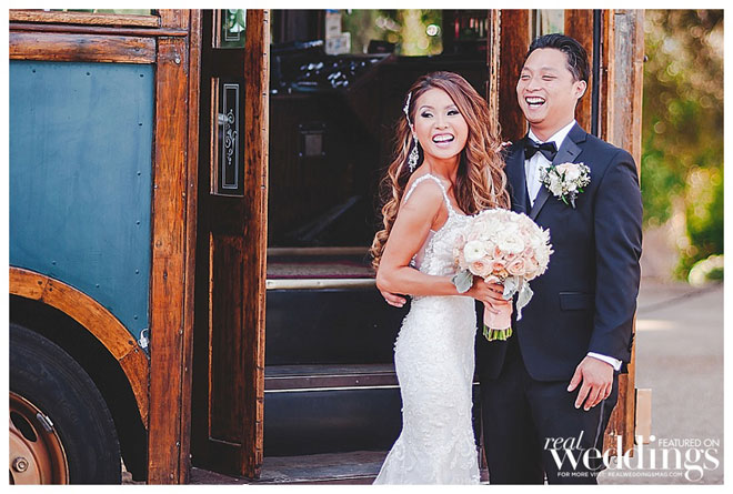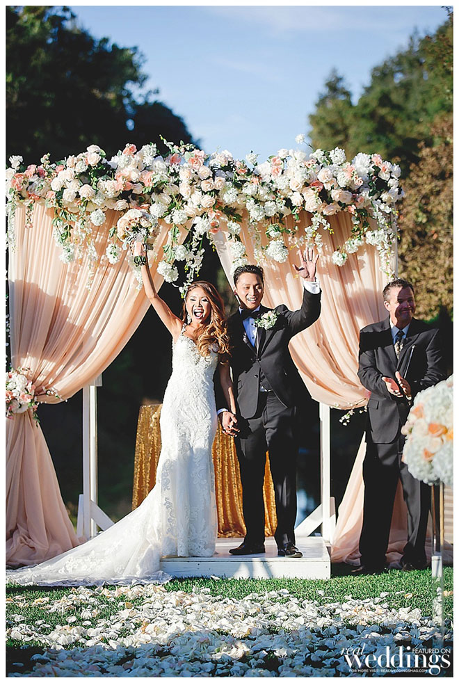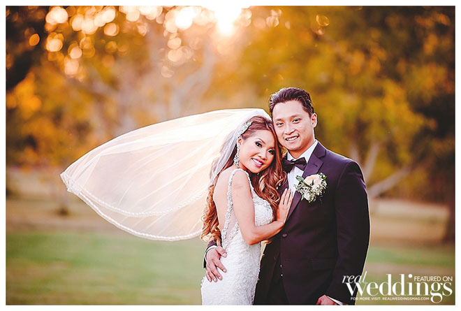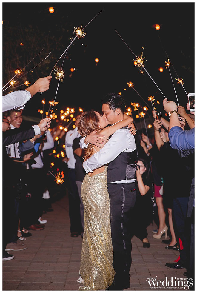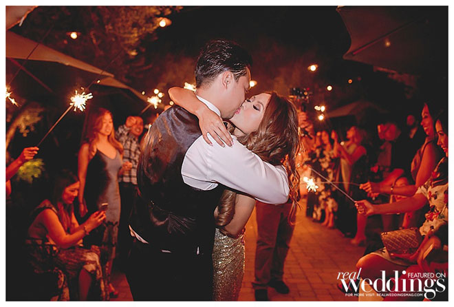 As Le walked down the aisle to meet her groom, she felt the love surround her. “I was thinking ‘Wow, it’s happening,’ and in the back of my mind praying that I don’t trip over these high heels I have on,” she says. “I was a little nervous because everyone was staring at me, but happy to see everyone there and how they were standing up to cheer for us. I remember seeing Duong standing there, looking at me with the biggest smile on his face. I think the feelings were mutual. I must’ve had the biggest smile on my face as well. This was our day.”