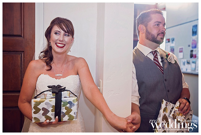 The day of the wedding, both Leia and Scott were beaming with excitement. All of the DIY details required a lot of set-up and direction from the couple; however, they did not want to see each other before the ceremony. They set up walkie-talkies and made a game out of avoiding each other. It was frustrating at times, and Leia even found herself hiding for a bit, but overall it was pure fun.