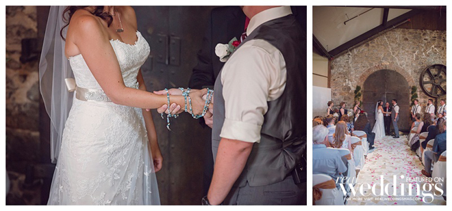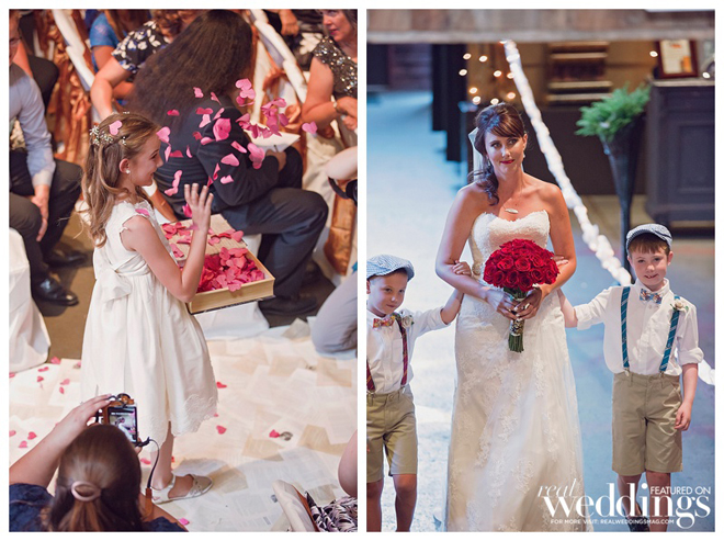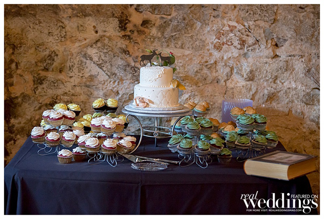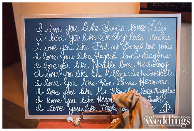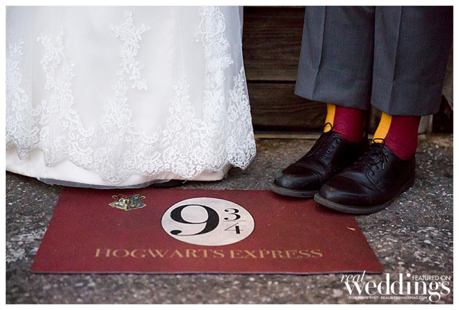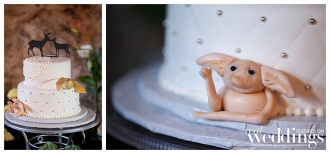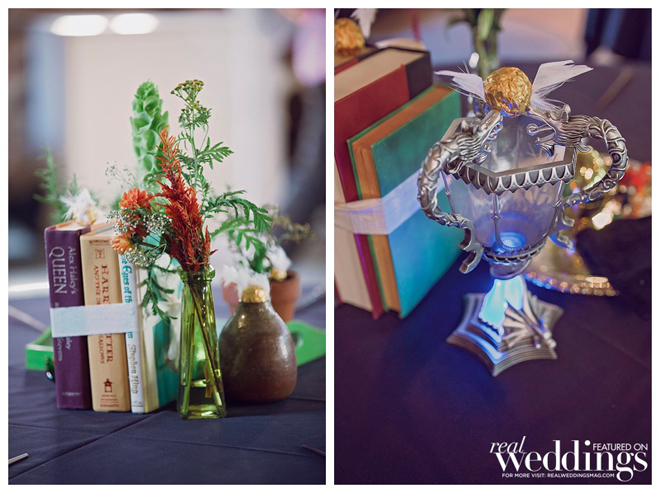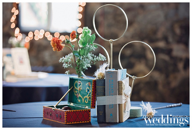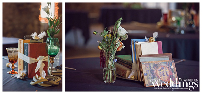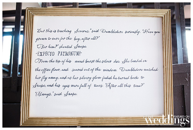 Harry Potter inspired each and every detail: from the aisle runner made from pages of the books to the vows, which included the “Unbreakable Vow” portion from the book as well. As special as the details were, for Leia, having her sons walk her down the aisle, and watching Scott embrace them before he took her hand was the most memorable part of the whole day.