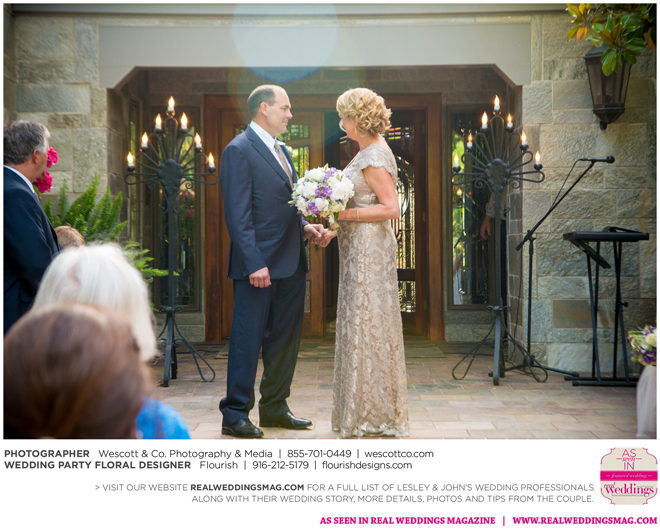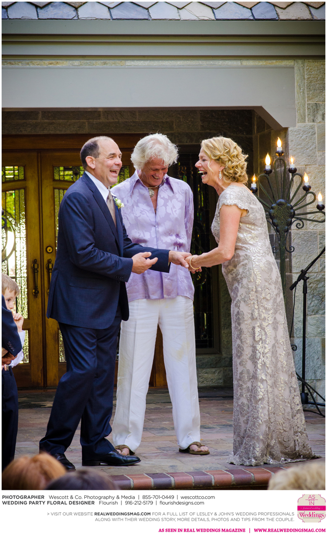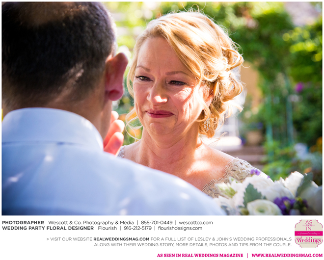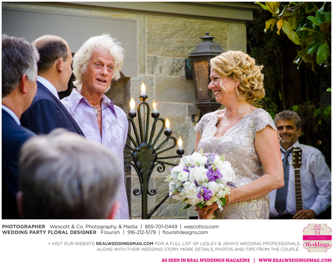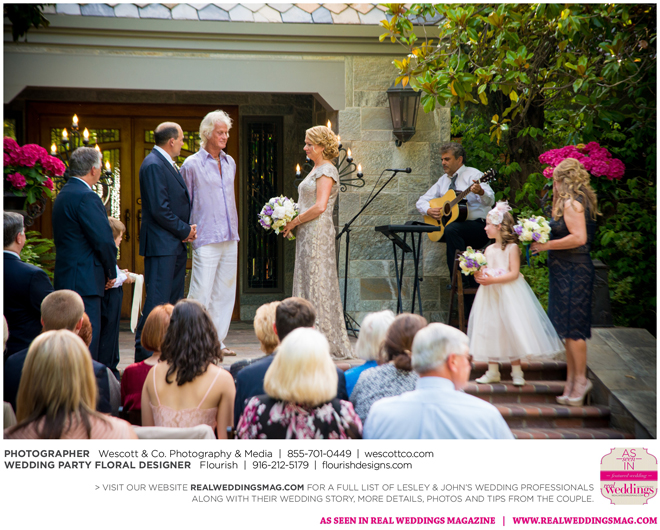 As originally planned, the ceremony was kept simple and short, yet deeply personal. “We’ve already been through so much. We spoke from our hearts,” Lesley says. “My dear friend, and husband to a bridesmaid, played guitar and sang my song, James Taylor’s ‘Something In the Way She Moves.’ Many guests were brought to tears during our ceremony.”