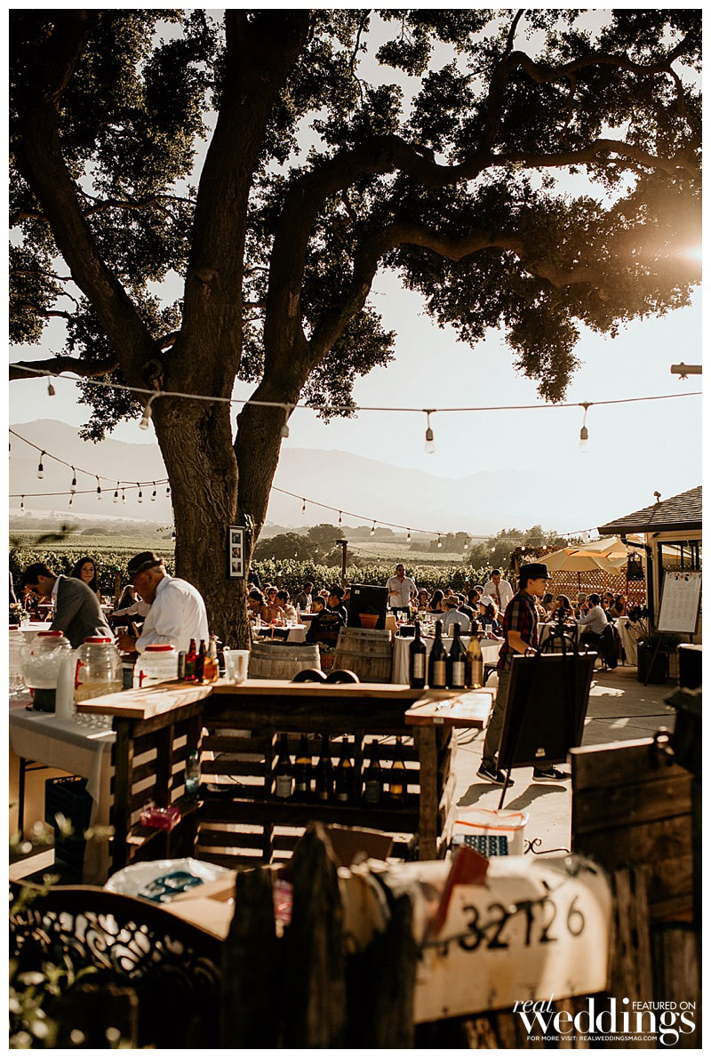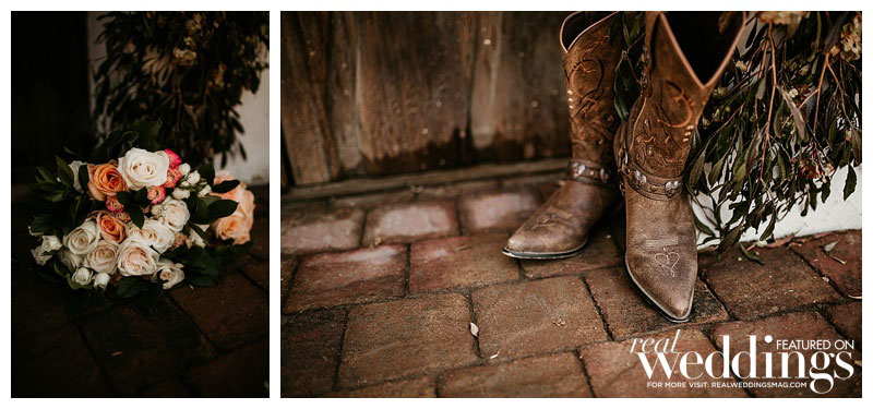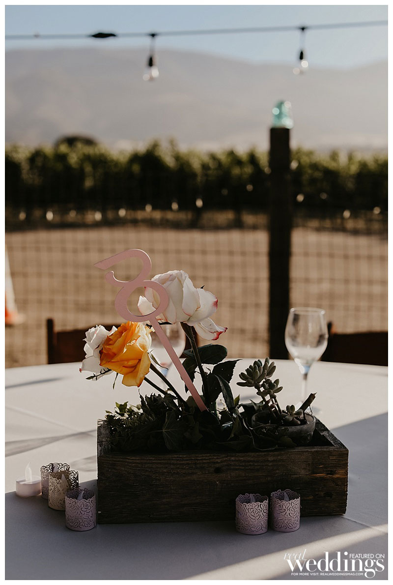 The elegant color scheme of cream, light green, peach and pink was a fit for the rustic ceremony venue. The reception was held on a patio under an oak tree at Lily’s aunt’s private ranch in the foothills of Soledad, surrounded by vineyards, farmland and white barns. Lily’s mother created the floral arrangements, including the bride’s bouquet and the centerpieces.