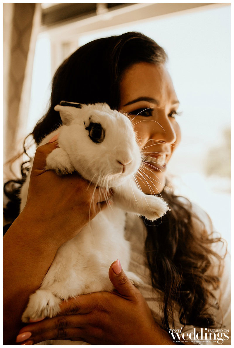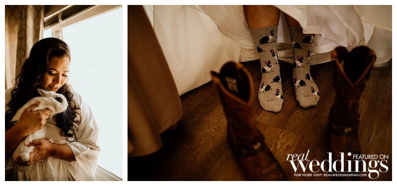 In addition to their family-only wedding party, the couple’s four-year-old rabbit, Bandit, was ring bearer. He was dapper in a custom suit made by Lily’s aunt. Both Lily and Ryan wore bunny-themed socks on the big day, a nod to Bandit!