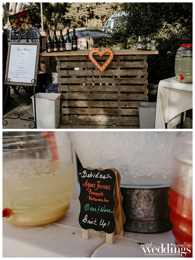 We had the bride’s aunt make a small banana cake with white buttercream frosting for us to cut and she also made some desserts (peanut butter balls, chocolate chip cookies, brownies, toffee, and oakie bars) for our dessert bar. The groom’s mother supplied a variety of Italian cookies and biscotti while the bride’s mother provided the pan dulce to represent the heritage of the bride and groom.