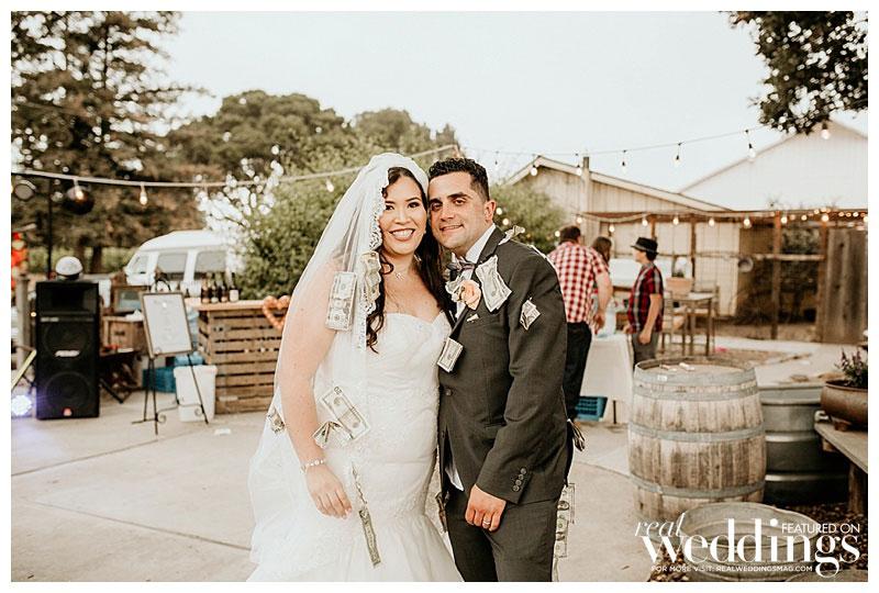 At the reception, the couple shared a dance with their mothers at the same time to the song “We Are Family” to symbolize the families uniting. They also had a traditional Mexican money dance. The buffet, including chicken fajitas, birria, rice and beans, as well as pan dulce and other treats, reflected the bride’s Mexican heritage. The groom’s taste was reflected in the banana wedding cake—his favorite flavor.
