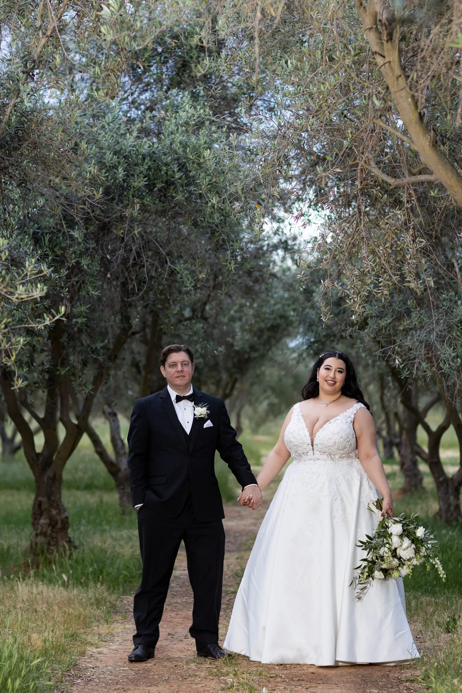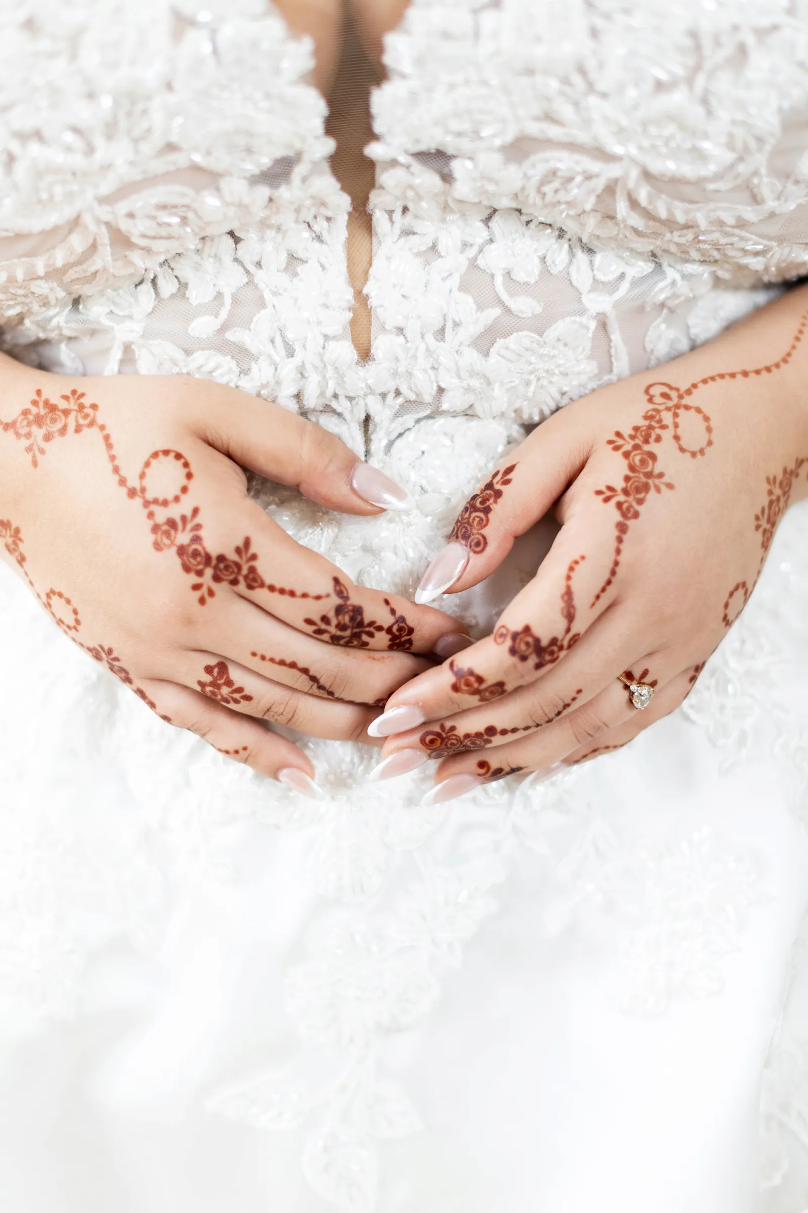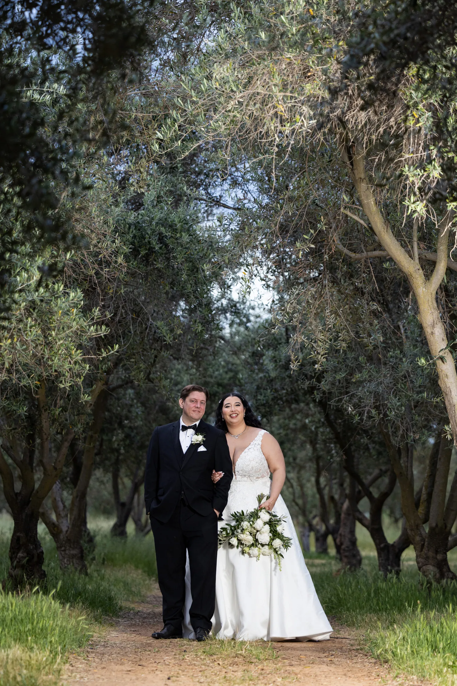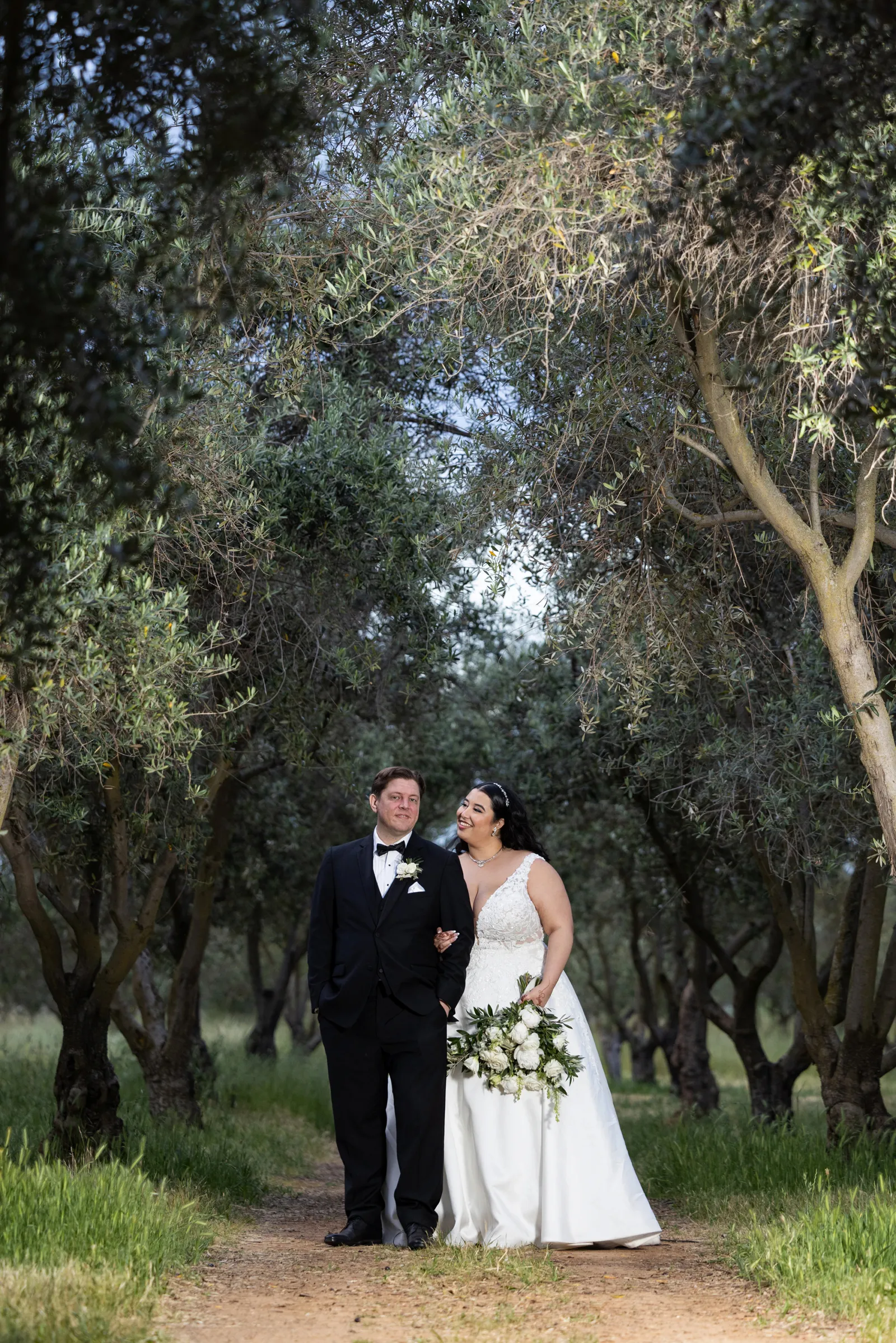 I definitely wanted to blend our cultures. Me, a Tunisian woman, and David, a born and raised Sacramentan. We were so lucky to find a beautiful winery that also was an olive grove, since vineyards are quintessentially Northern Californian and olives are important to Tunisian culture as a sign of prosperity and family. We also knew we wanted a dry wedding, as most of our friends and family don’t drink. Early on in planning, I knew I wanted to serve baklava and Turkish coffee at the wedding, since that is customary in Tunisian weddings. Luckily, when I googled “Baklava and Turkish Coffee Sacramento”, I found Baklava and Coffee! They provided after dinner refreshments and were a huge hit. They were incredible professional and entertaining, and people were coming up to me all night telling me how much they enjoyed it. Two days before the wedding (on Wednesday), I had a henna ceremony with my family and bridal attendants. This is a traditional Tunisian practice. I hired MyHennaSpirit to come and create beautiful henna designs on everyone’s hands, and we enjoyed some traditional mint tea and sweets. It was a beautiful day and a great way to start the festivities. Then, the next night, we had our rehearsal dinner at Kasbah Lounge in Sacramento. The food was amazing, and Tanya (the owner) went out of her way to make it all feel so special. They even had live Arabic music and a bellydancer! My family who had come in from abroad loved it and had the best time. We also made sure to let the DJ know in advance that we wanted to play some Arabic music during the reception. We provided a short list and they did an incredible job, mixing it effortlessly with the hip hop and pop music my American friends liked. My parents and friends danced the night away.