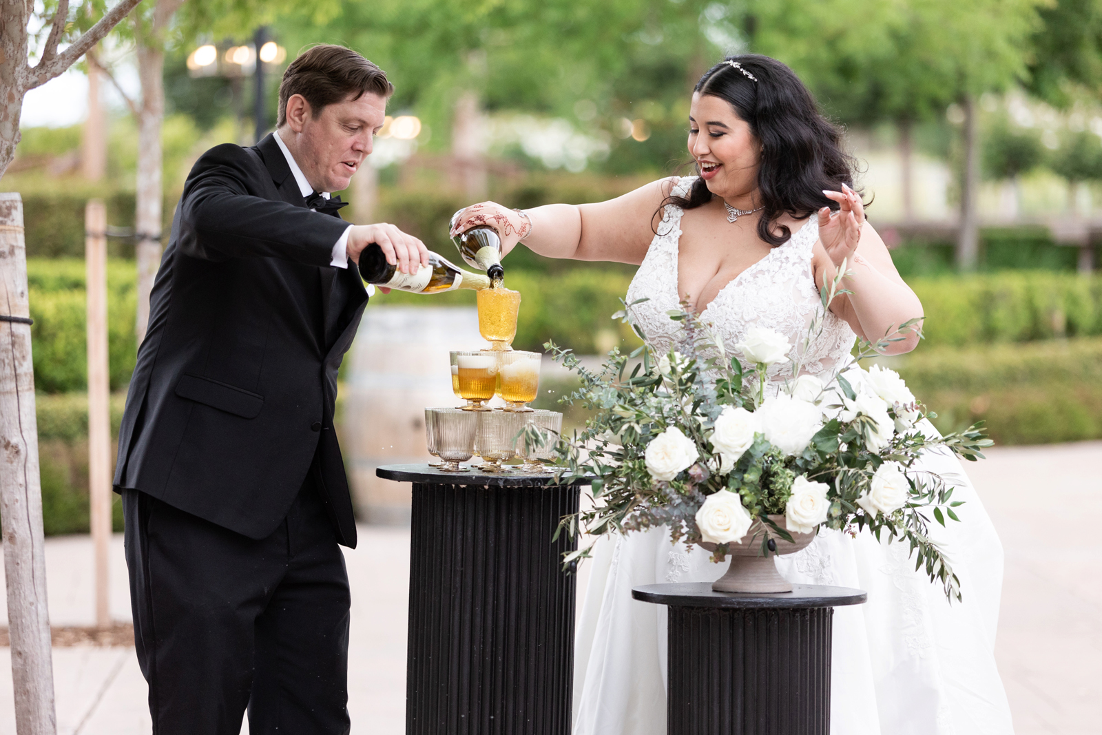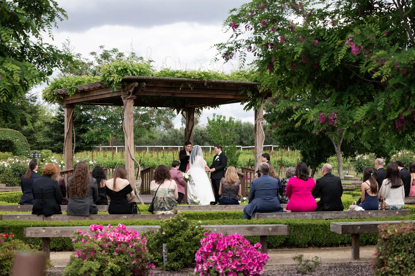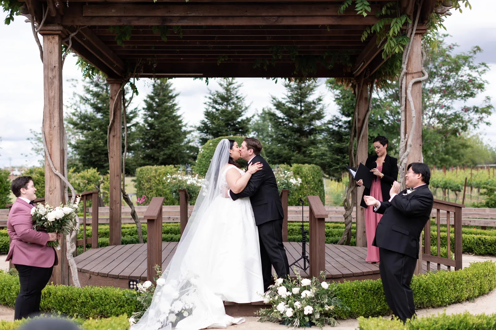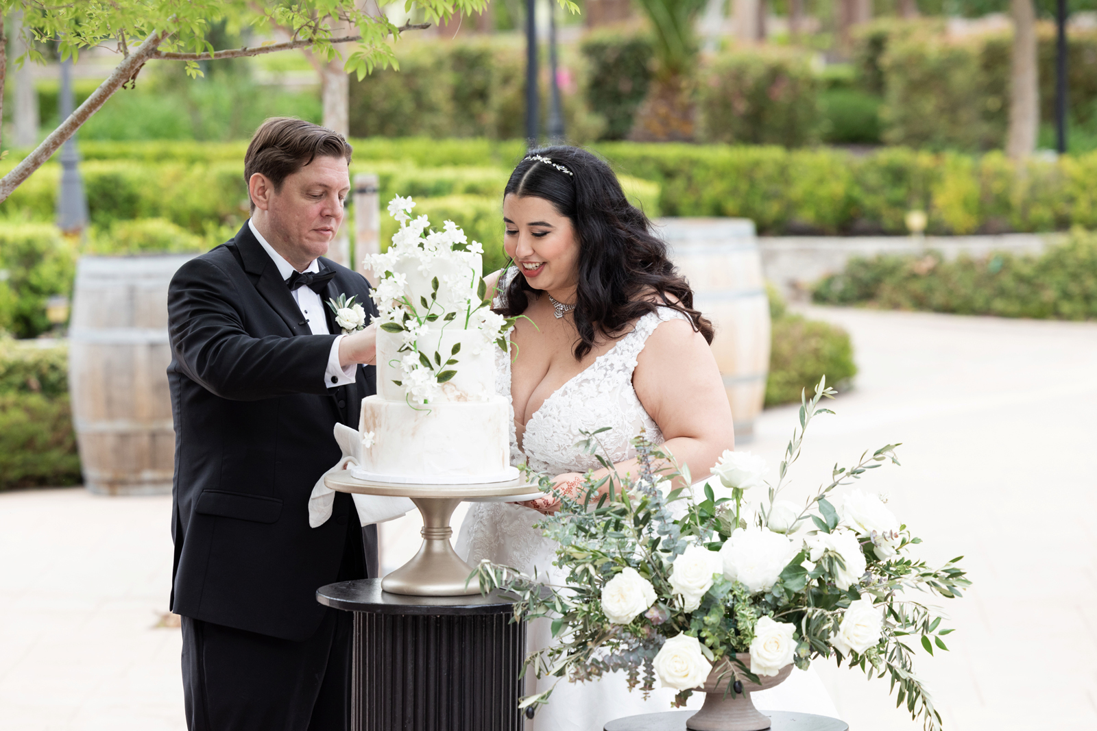 I definitely wanted to blend our cultures. Me, a Tunisian woman, and David, a born and raised Sacramentan. We were so lucky to find a beautiful winery that also was an olive grove, since vineyards are quintessentially Northern Californian and olives are important to Tunisian culture as a sign of prosperity and family. We also knew we wanted a dry wedding, as most of our friends and family don’t drink. Early on in planning, I knew I wanted to serve baklava and Turkish coffee at the wedding, since that is customary in Tunisian weddings. Luckily, when I googled “Baklava and Turkish Coffee Sacramento”, I found Baklava and Coffee! They provided after dinner refreshments and were a huge hit. They were incredible professional and entertaining, and people were coming up to me all night telling me how much they enjoyed it. Two days before the wedding (on Wednesday), I had a henna ceremony with my family and bridal attendants. This is a traditional Tunisian practice. I hired MyHennaSpirit to come and create beautiful henna designs on everyone’s hands, and we enjoyed some traditional mint tea and sweets. It was a beautiful day and a great way to start the festivities. Then, the next night, we had our rehearsal dinner at Kasbah Lounge in Sacramento. The food was amazing, and Tanya (the owner) went out of her way to make it all feel so special. They even had live Arabic music and a bellydancer! My family who had come in from abroad loved it and had the best time. We also made sure to let the DJ know in advance that we wanted to play some Arabic music during the reception. We provided a short list and they did an incredible job, mixing it effortlessly with the hip hop and pop music my American friends liked. My parents and friends danced the night away.